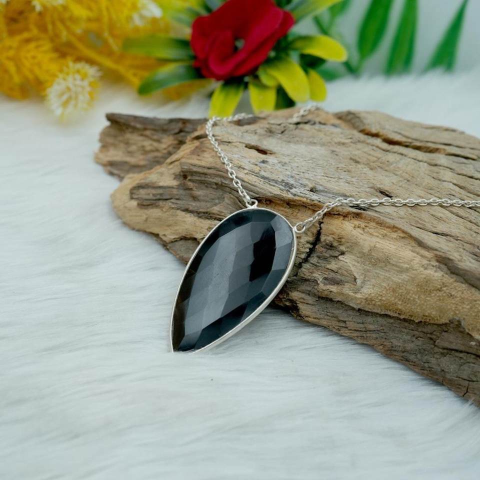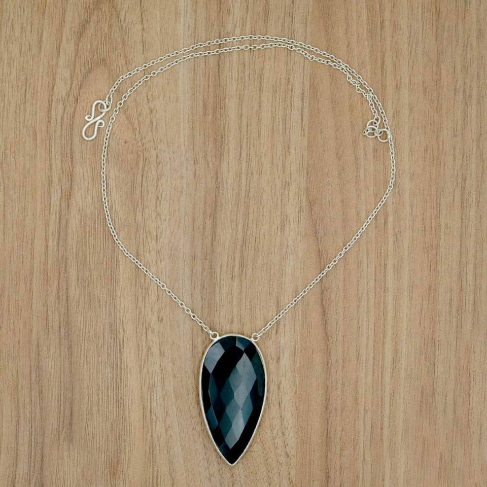 925พลอยพลอยพลอยโอนิกซ์สีเงินสเตอร์ลิงทำด้วยมือสีดำสร้อยคอสำหรับงานแต่งงานที่เรียบง่ายของขวัญที่น่าทึ่งสำหรับแฟชั่นของเธอ