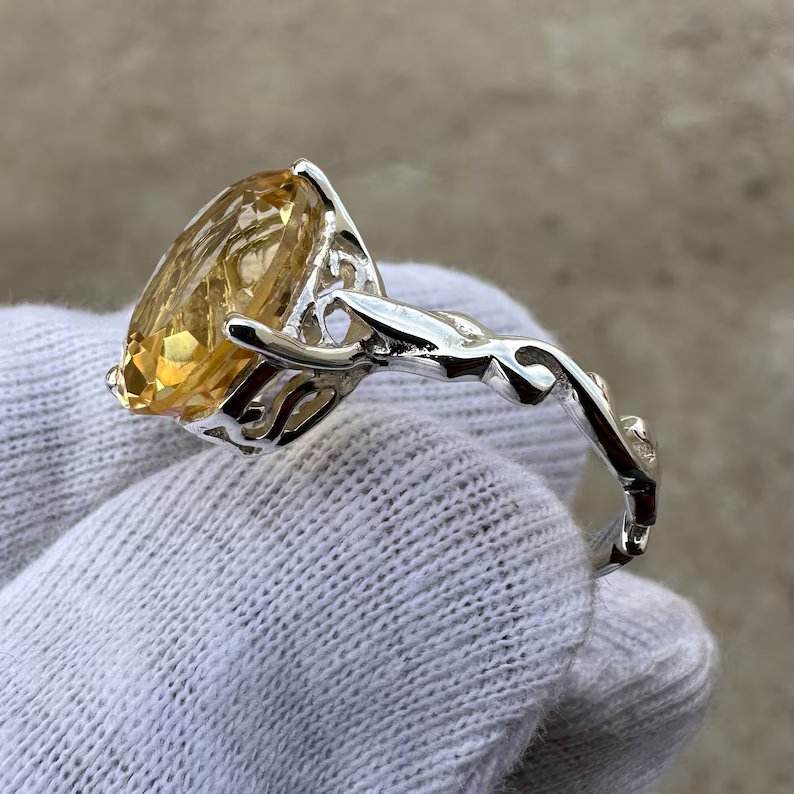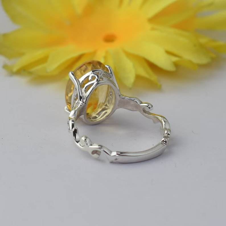 แหวนพลอยซิทรินทรงรีสีเงินแท้925วงแหวนดีไซน์โดดเด่นสำหรับงานแต่งงานของผู้หญิงงานหมั้นครบรอบวันเกิด