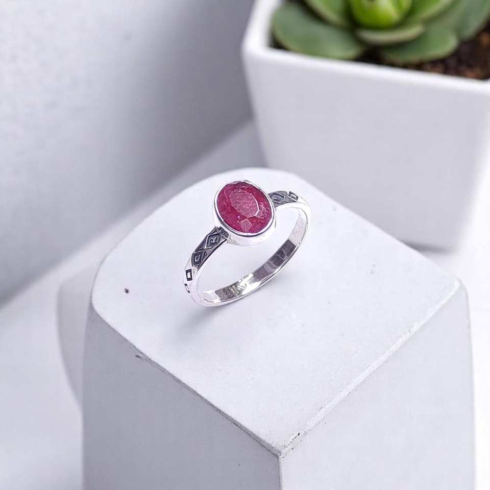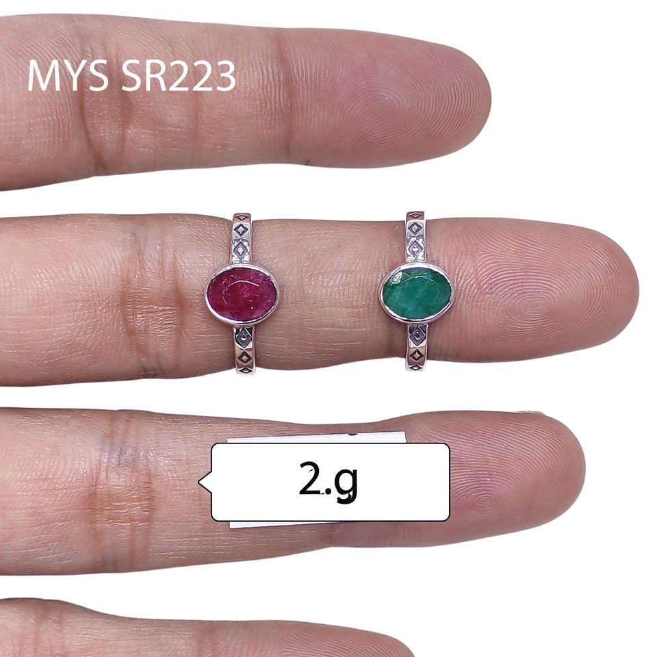 แหวนเงินแท้ 925 ประดับทับทิมและมรกตทรงรี ดีไซน์ทำมือ ราคาขายส่ง เครื่องประดับเงิน