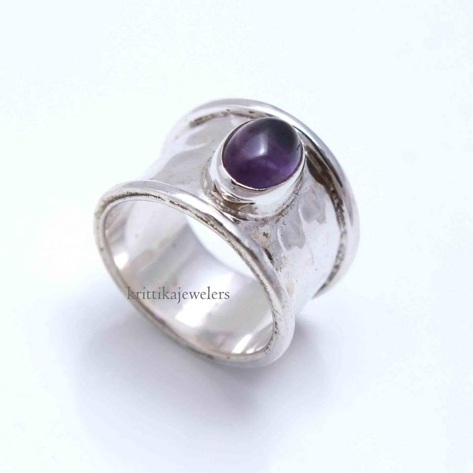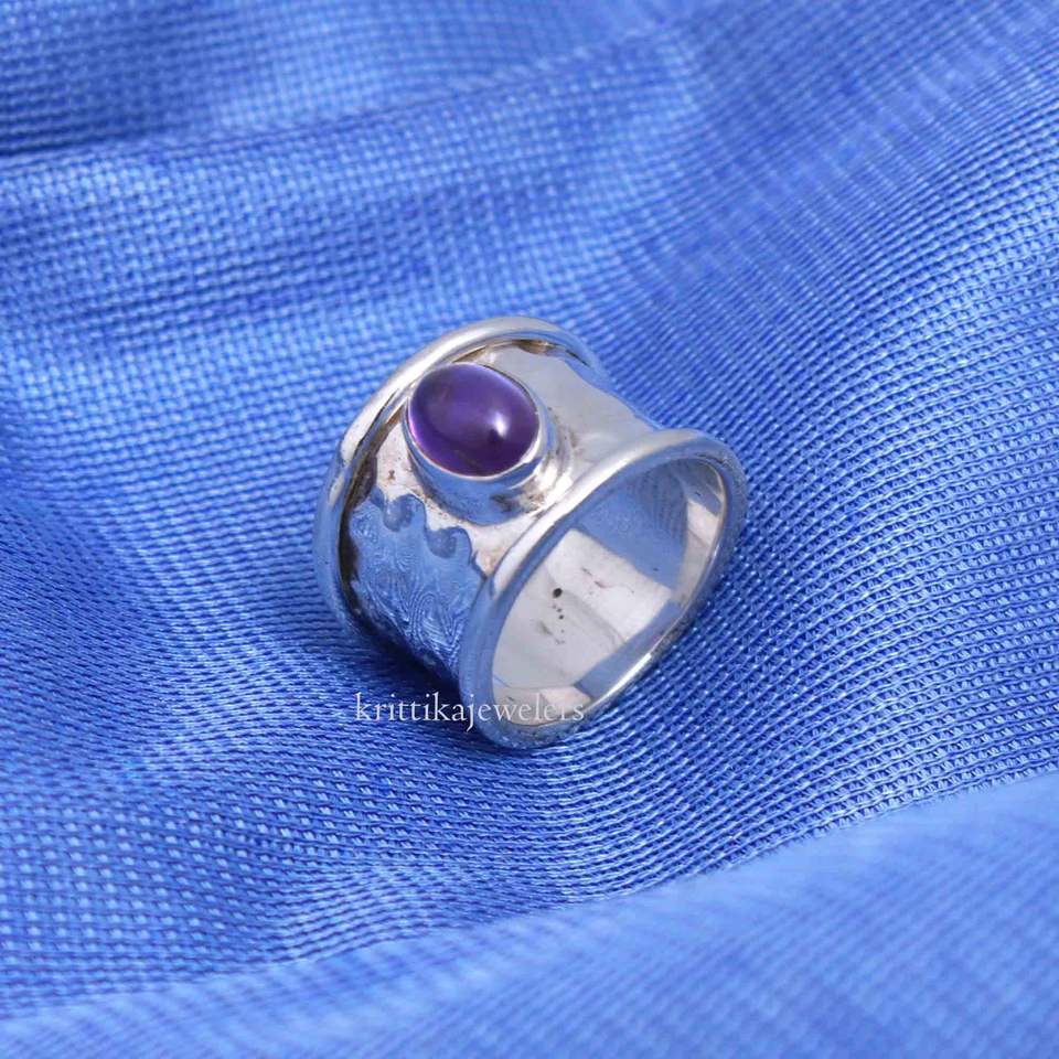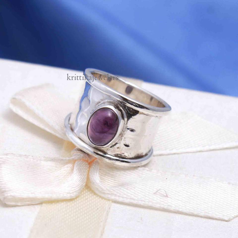925 Sterling Silver Ovate Cut Purple Agate Gemstone Wedding Band Handmade Fine Ring Bezel Setting February Birthstone Party