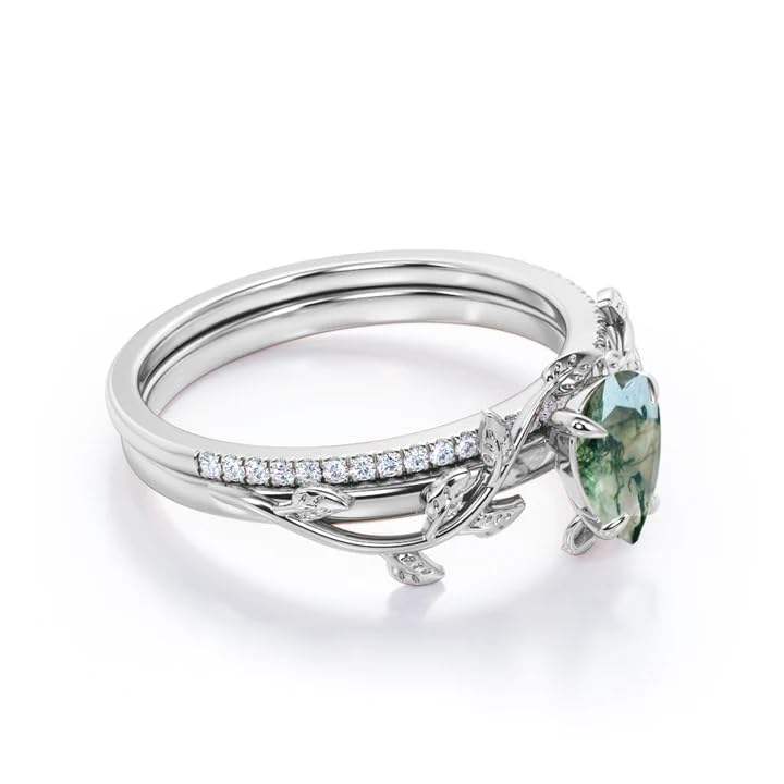 แหวนเงินแท้ 925 ประดับมอสอาเกตทรงหยดน้ำและมอสซาไนต์ ชุบทองคลาสสิกสำหรับผู้หญิง