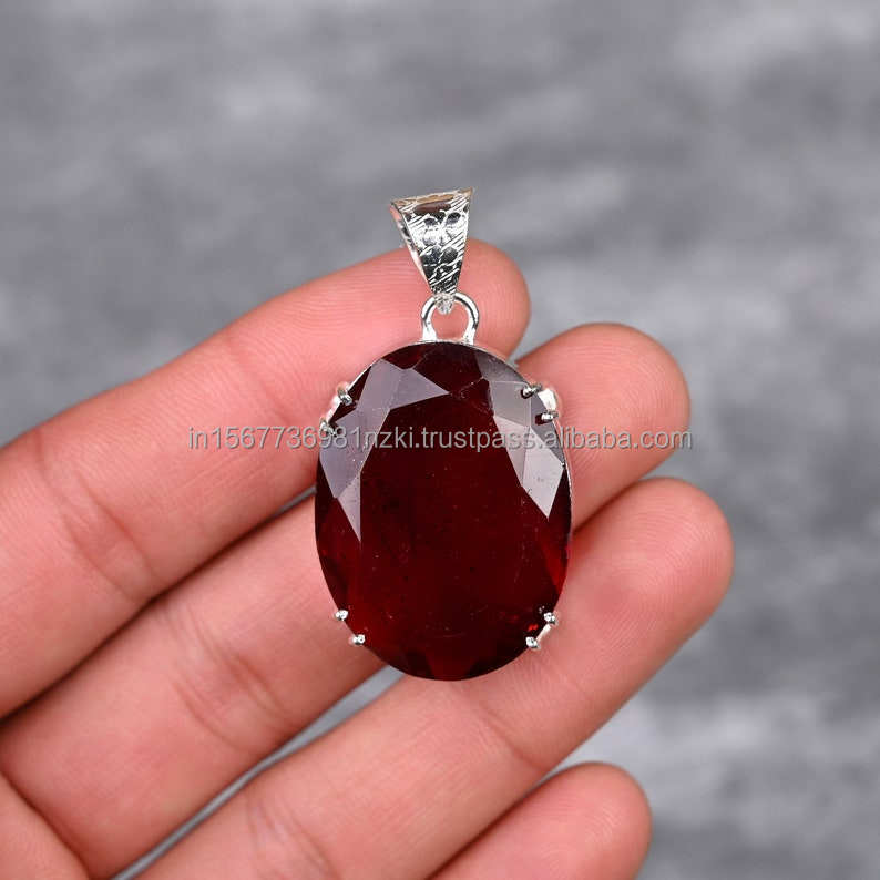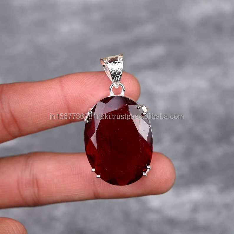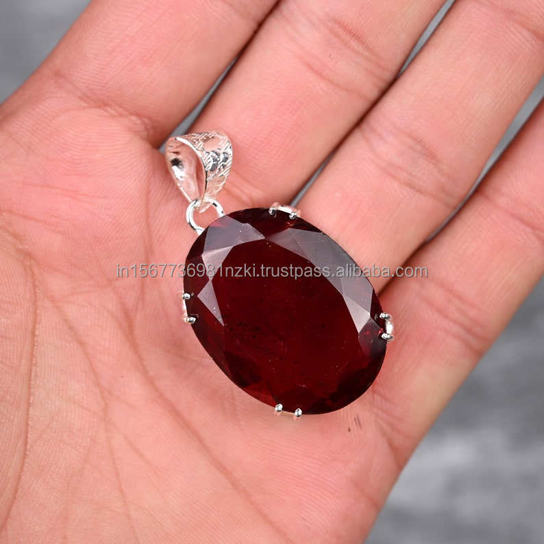 925จี้เงินแท้จี้โกเมนจี้อัญมณีทำด้วยมือเครื่องประดับโกเมนของขวัญสำหรับจี้สร้อยคอสำหรับแม่ของเธอ