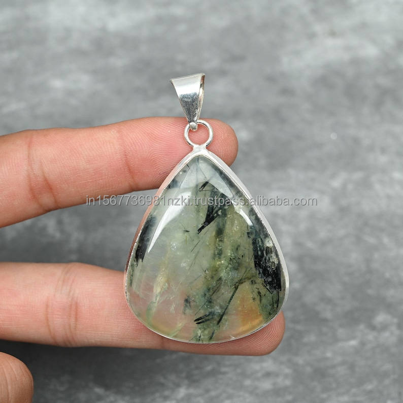 จี้สร้อยคอเงินแท้จี้อัญมณีพรีไนต์สำหรับ925ทำด้วยมือเครื่องประดับเงินพรีไนต์สำหรับเป็นของขวัญให้กับแม่ของเธอ