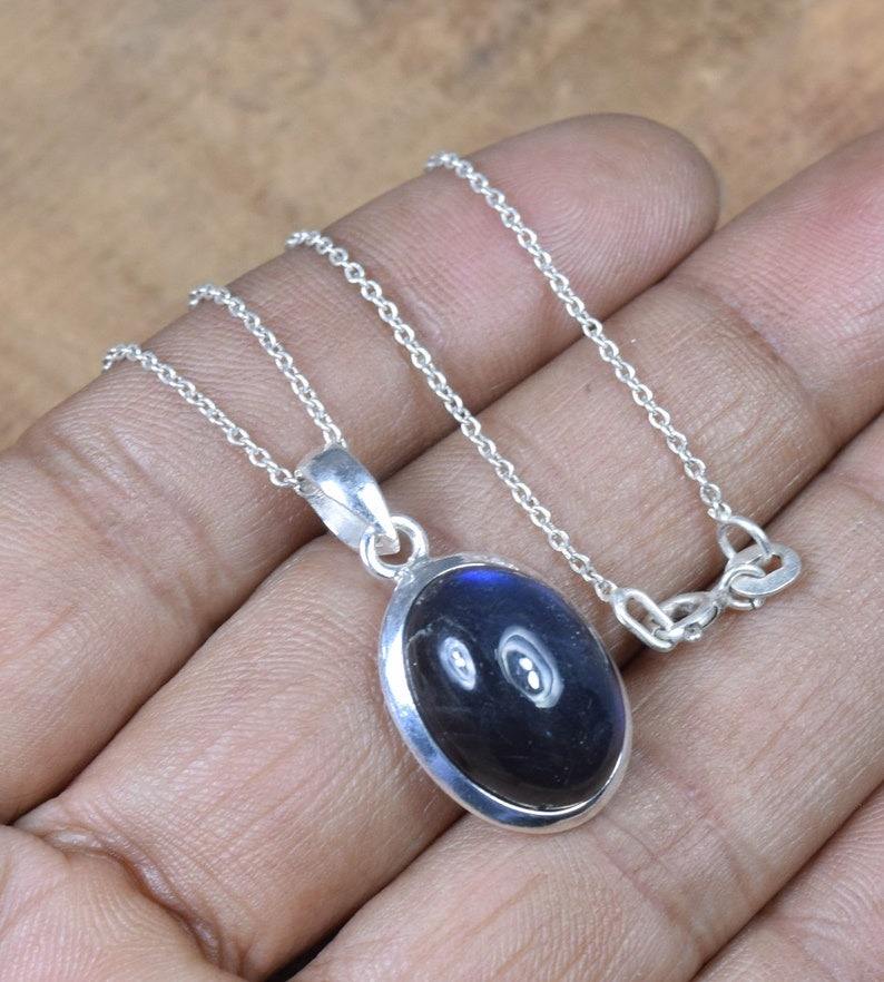จี้เงินสเตอร์ลิง925พร้อมที่ประทับ925เครื่องประดับที่สมบูรณ์แบบของขวัญแต่งงานที่สมบูรณ์แบบสำหรับความรักจี้พลอยลาบราดอไรต์ดีไซน์เรียบง่าย