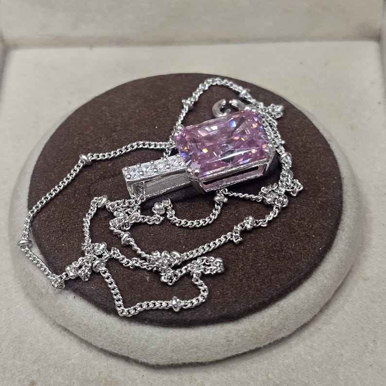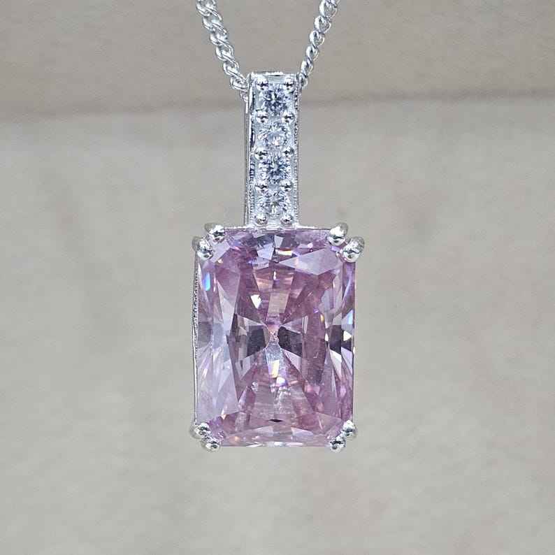 สร้อยคอเงินแท้ 925 ประดับเพชรโมอิสซาไนต์สีชมพูทรงเรเดียนท์คัท คุณภาพ VVSD สำหรับผู้หญิง ขายส่งจำนวนมาก