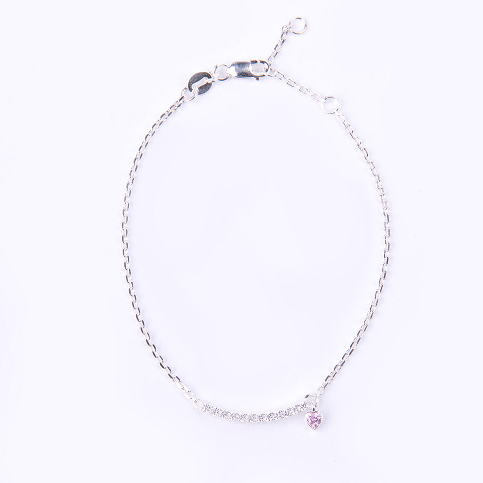สร้อยข้อมือเงินแท้ 925 ชุบทองคำขาว ประดับเพชรซิคอน สไตล์วินเทจทันสมัย พร้อมจี้รูปหัวใจสีชมพู เหมาะสำหรับเป็นของขวัญในงานปาร์ตี้