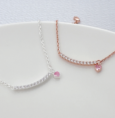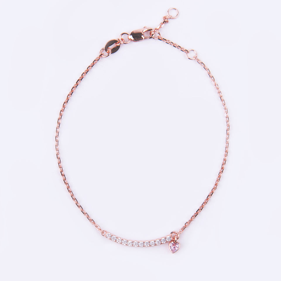 ชุบเงินแท้ 925 กุหลาบทองอินเทรนด์สร้อยข้อมือเพชรเพทายบาร์เครื่องประดับพร้อมจี้หัวใจสีชมพู