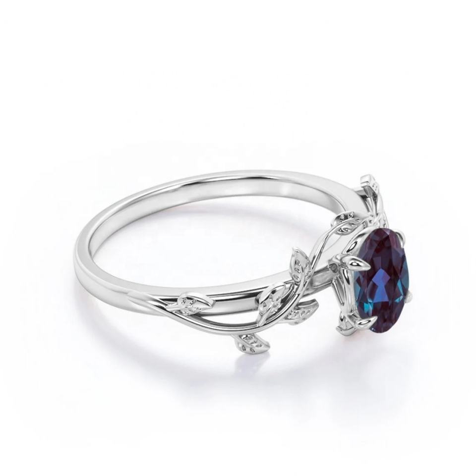 แหวนเงินแท้ 925 ประดับพลอยอะเล็กซานไดรต์สีม่วงทรงรี 1 กะรัต แหวนหมั้นพลอยอะเล็กซานไดรต์ แรงบันดาลใจจากธรรมชาติ สำหรับเธอ