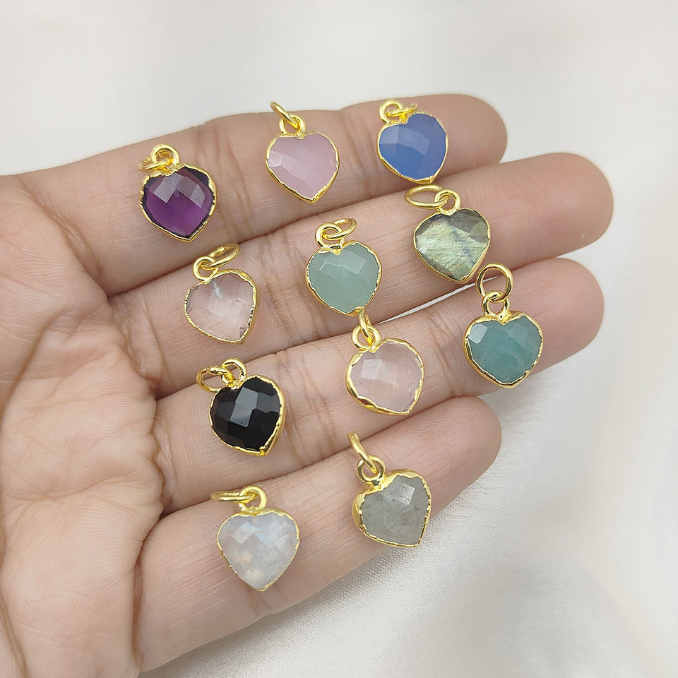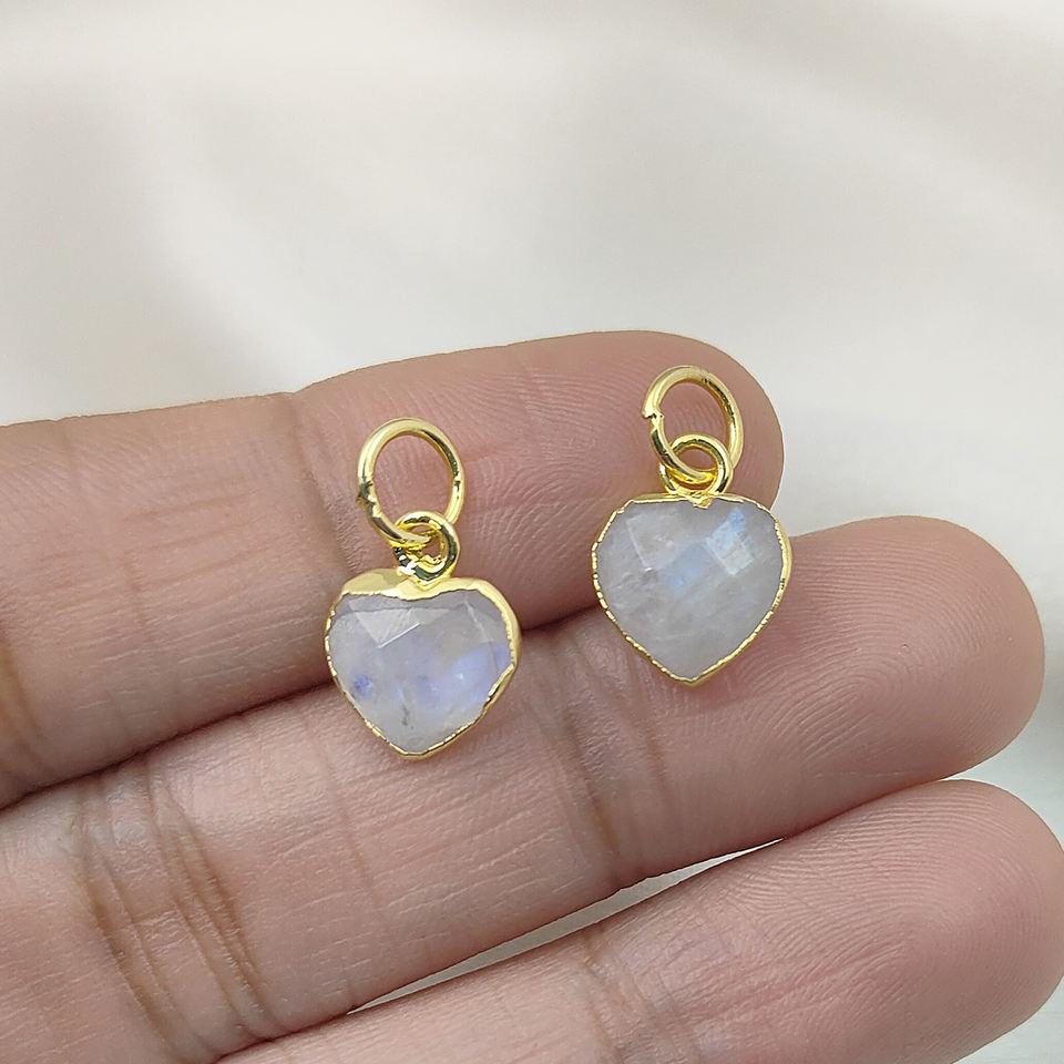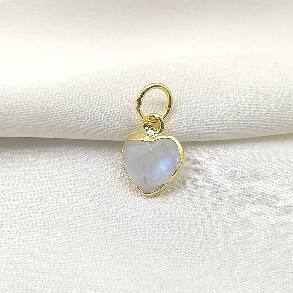 จี้รูปหัวใจพลอยมูนสโตนสีรุ้งเงินแท้ 925 - จี้รูปหัวใจพลอยสำหรับทำเครื่องประดับ DIY
