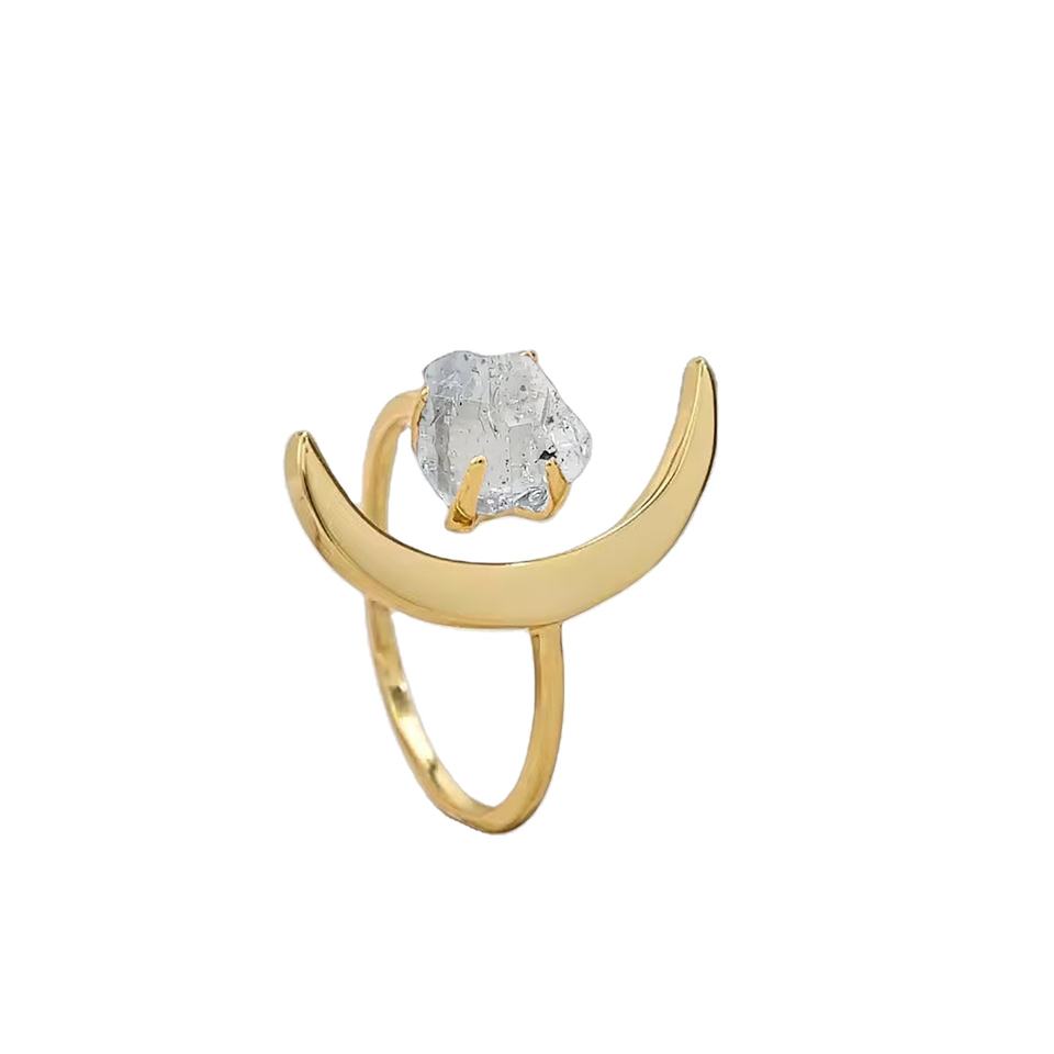แหวนเงินแท้ 925 ประดับเพชรเฮอร์คิเมอร์รูปพระจันทร์เสี้ยว | แหวนประดับพลอยประจำเดือนเกิดแบบแฮนด์เมด