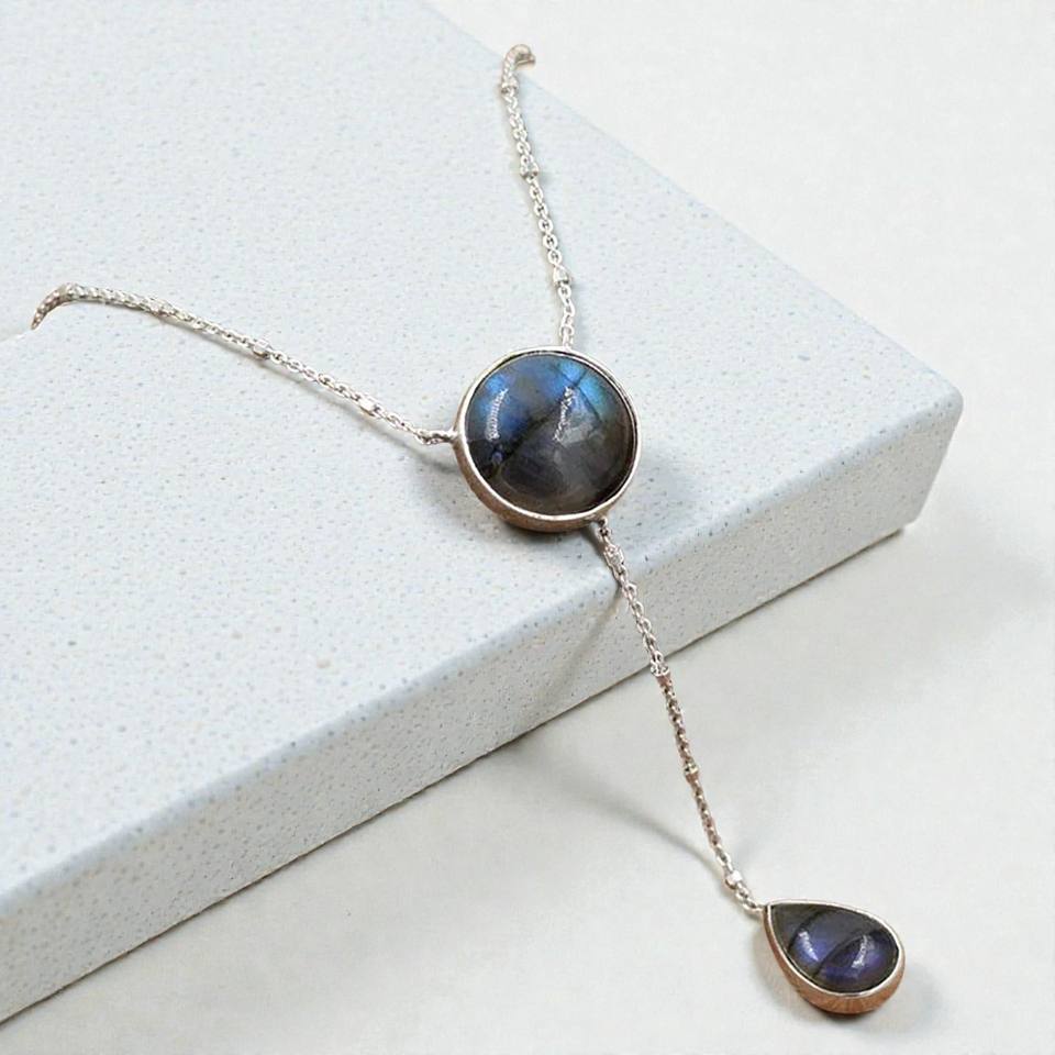 925 Sterling Silver Red Aventurine Y Drop Necklace Natural Round & Pear Shape Gemstone Moissanite Drop Pendant Women Necklace