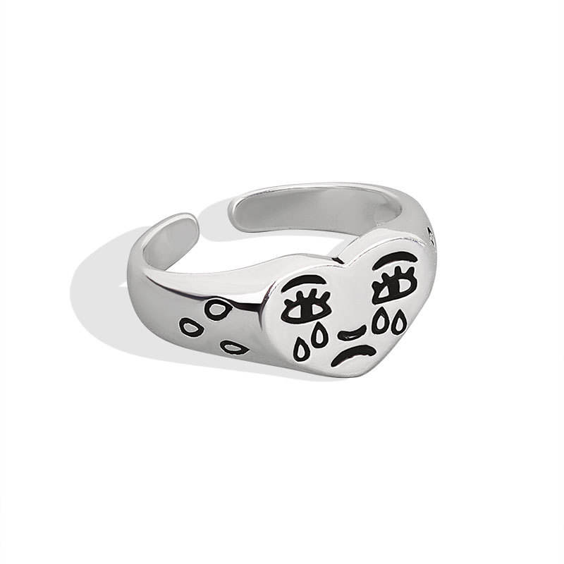 925เงินสเตอร์ลิงย้อนยุคน้ำตาเศร้ารักร้องไห้แหวนหัวใจ