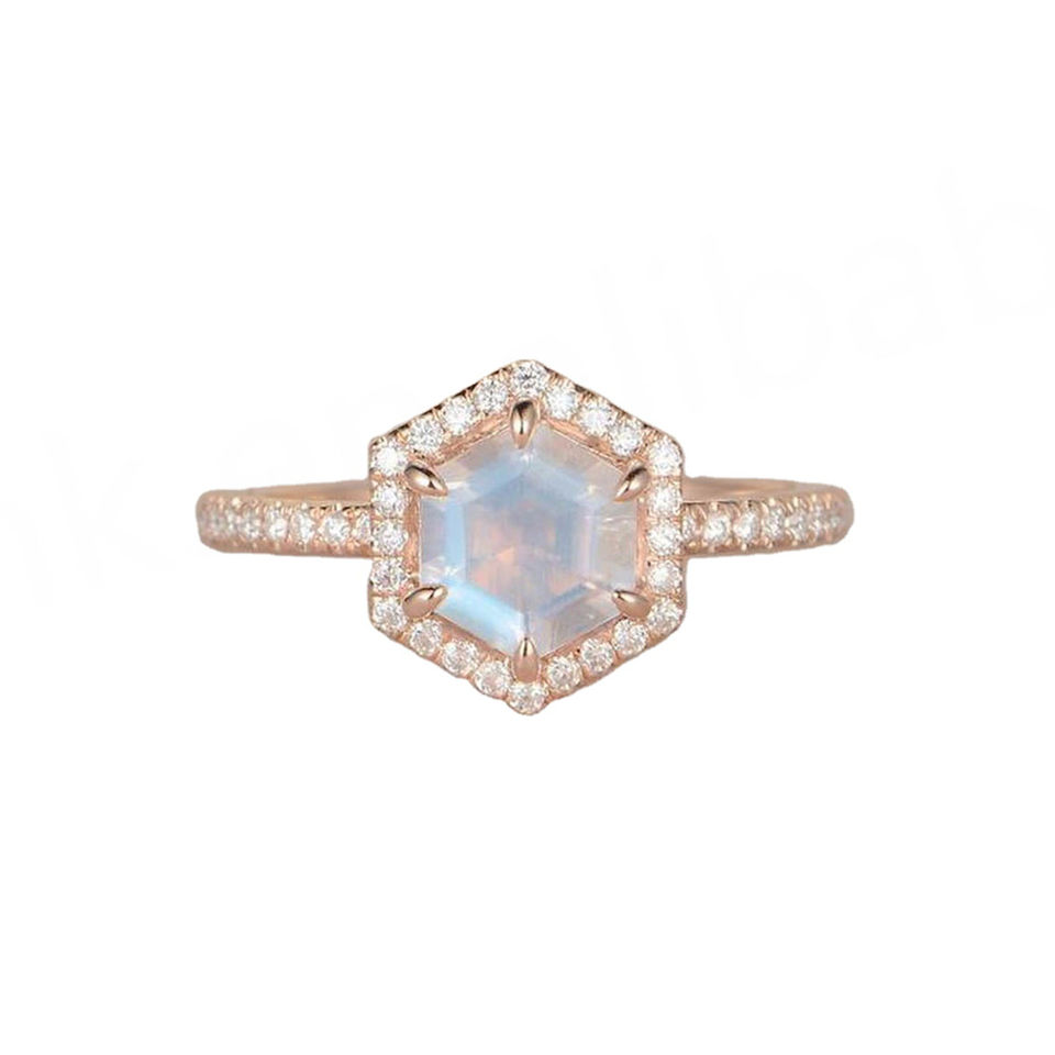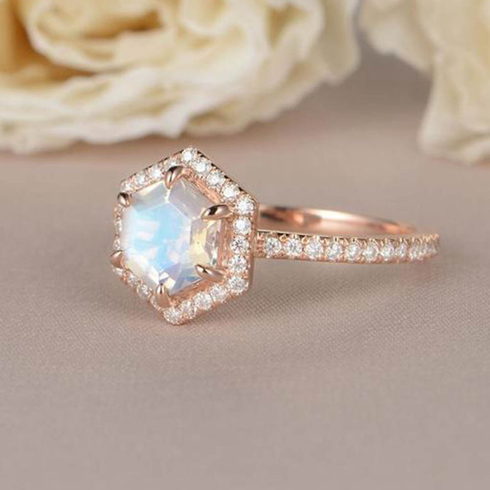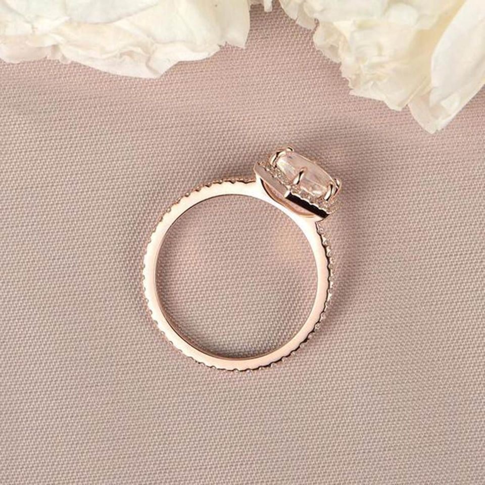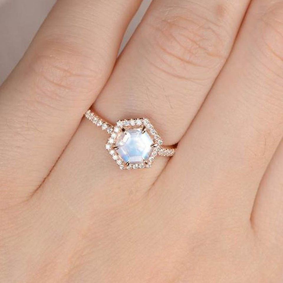 แหวนหมั้นทรงโอวอลประดับมูนสโตนสีน้ำเงินธรรมชาติ ชุบโรเดียม เงินแท้ 925 ดีไซน์ทันสมัย ประดับด้วยวงแหวนสีโรสโกลด์