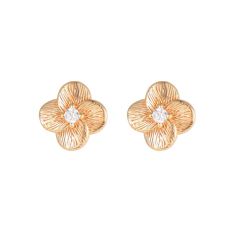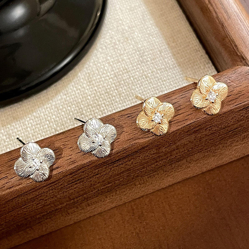 ต่างหูเงินแท้ 925 ชุบโรเดียม ดีไซน์ดอกไม้ทันสมัย ประดับเพชรซิคอนรูปใบโคลเวอร์สี่แฉก ของขวัญสำหรับผู้หญิง