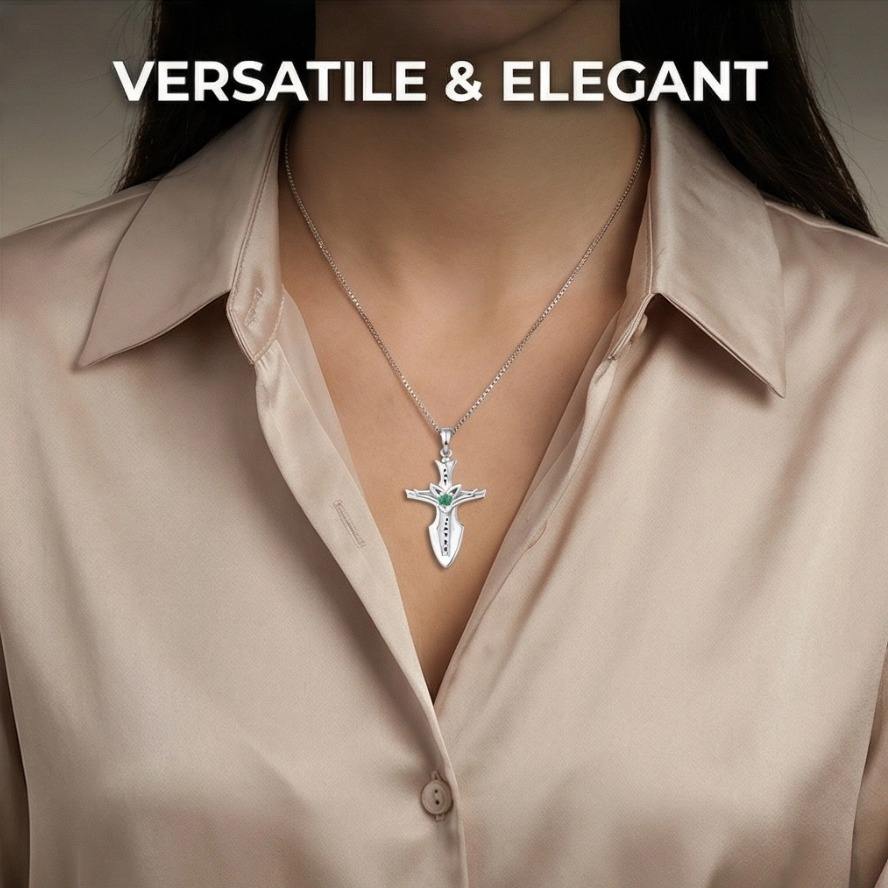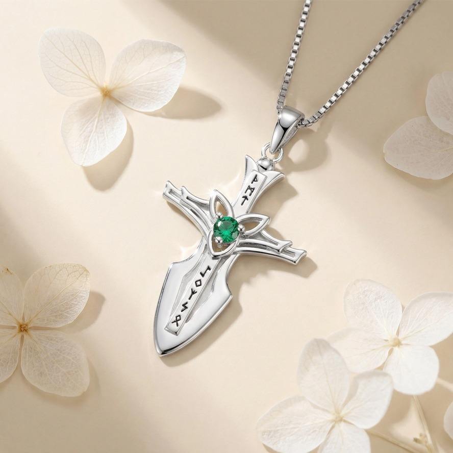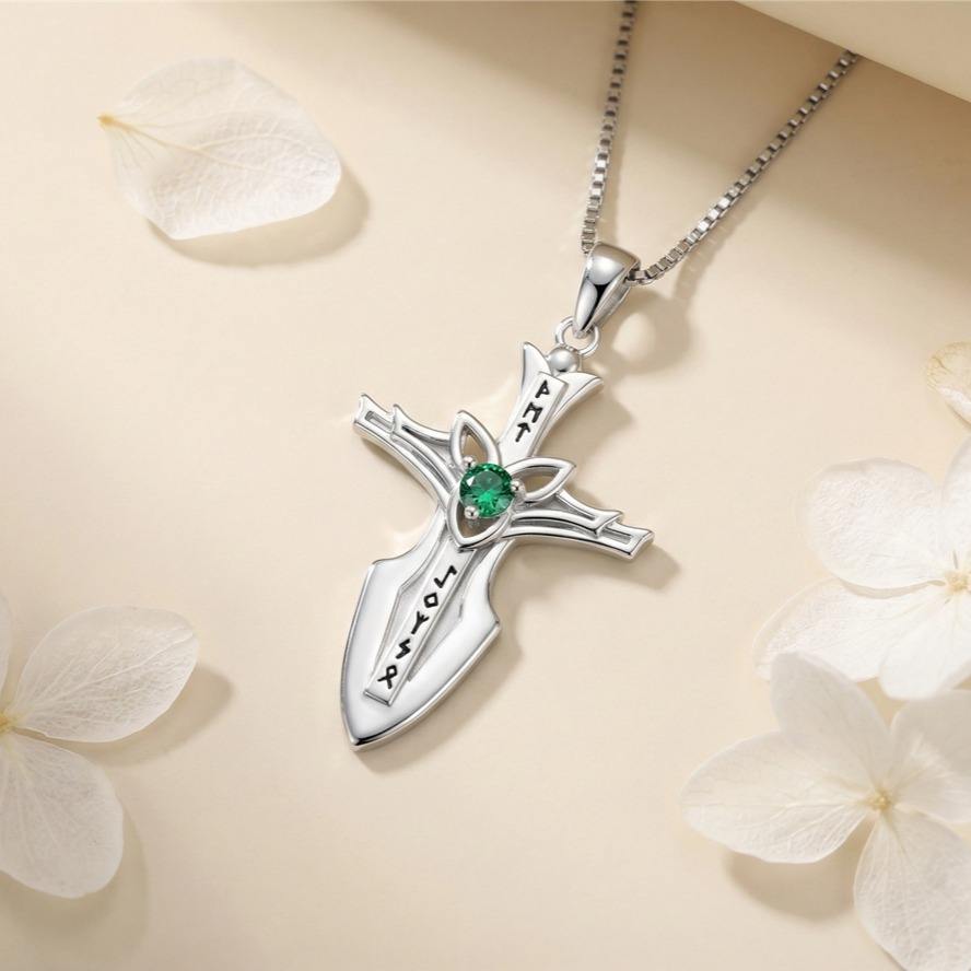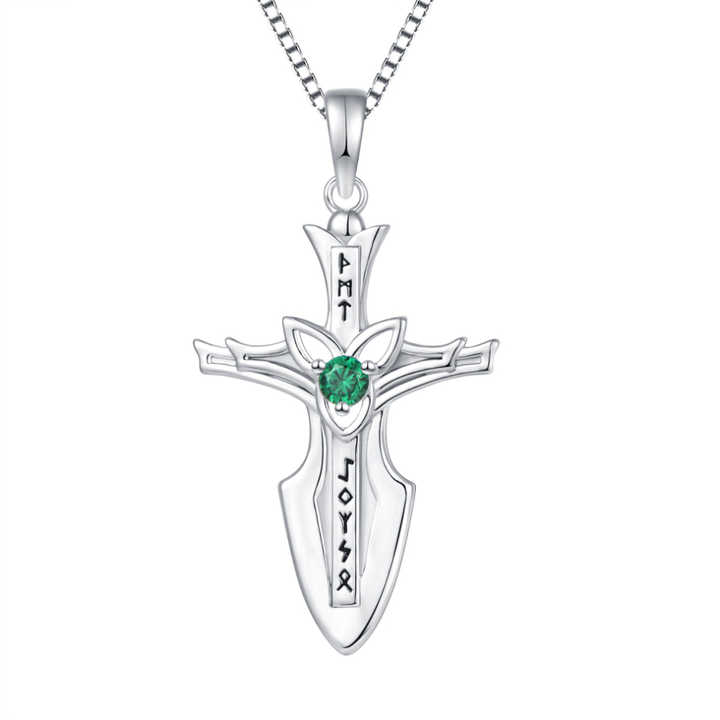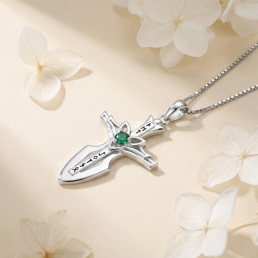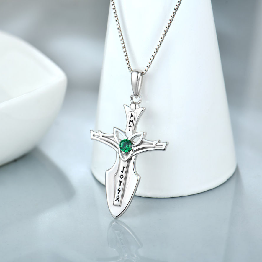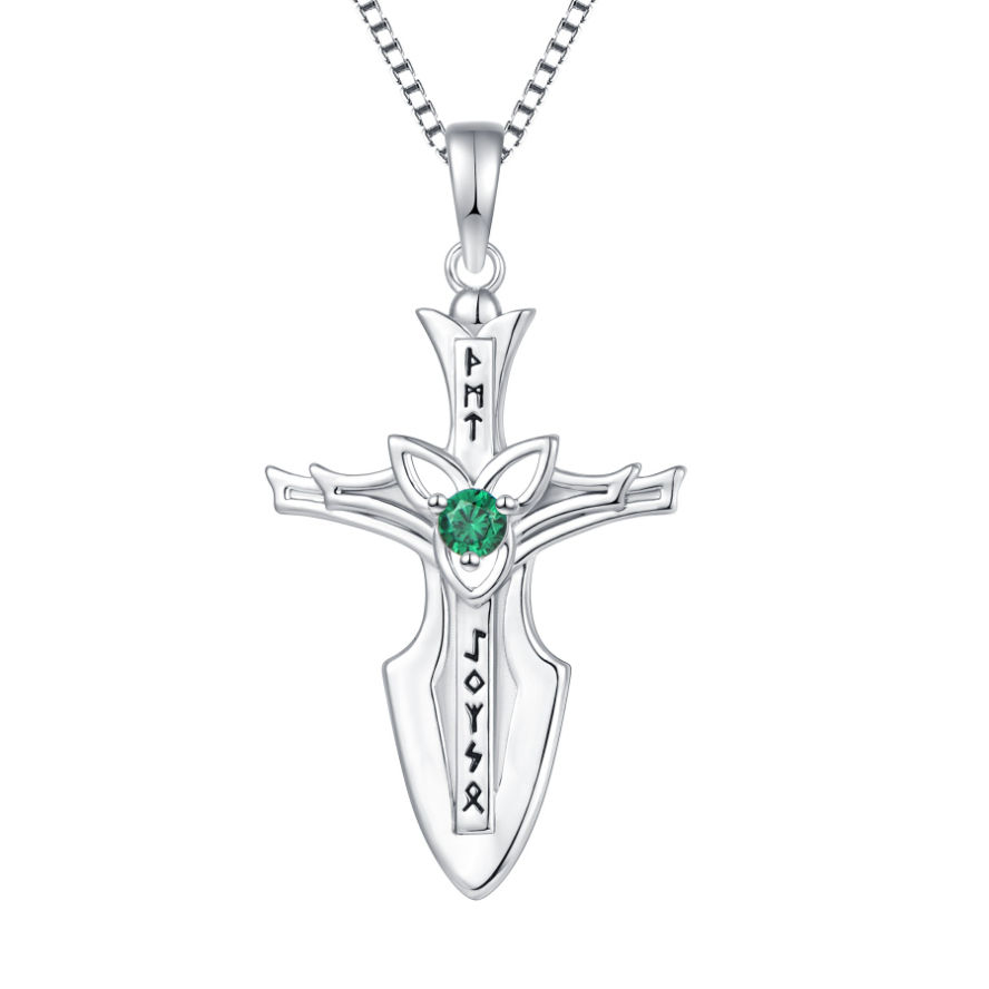 925เงินสเตอร์ลิงโรเดียมชุบสีเขียวอัญมณีซีแซดโบราณอักษรรูนสลักชาติพันธุ์สร้อยคอกางเขนของผู้ชายสำหรับงานแต่งงาน