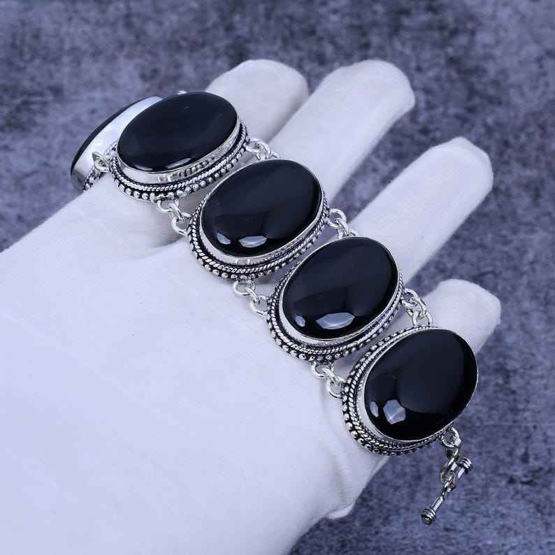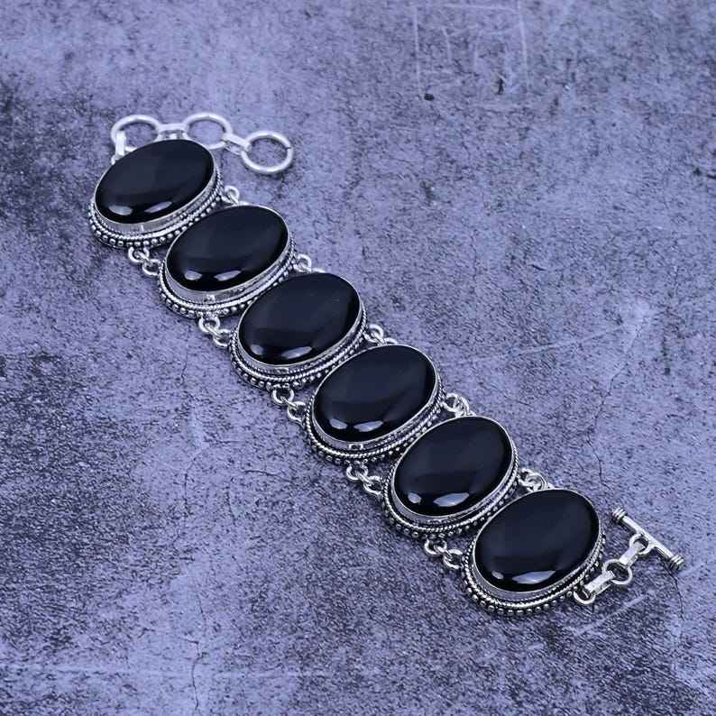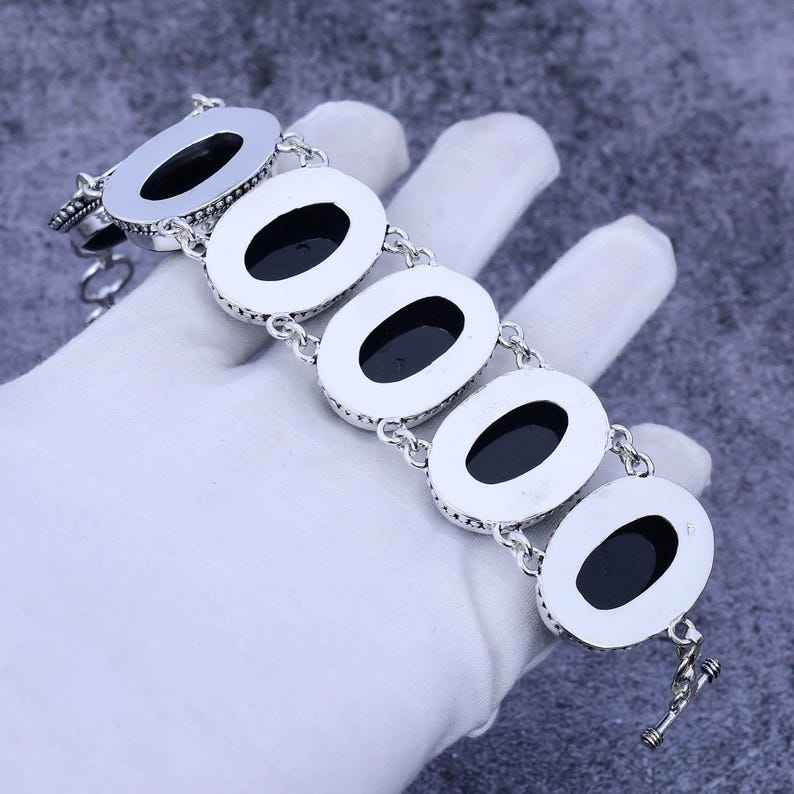 สร้อยข้อมืออัญมณีโอนิกซ์สำหรับผู้หญิงสำหรับการหมั้นทำด้วยมือ925เงินสเตอร์ลิงชุบโรเดียมทำด้วยมือ