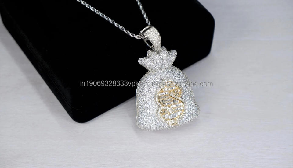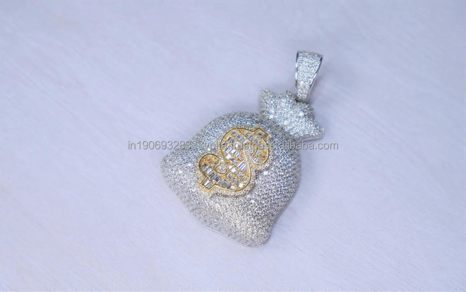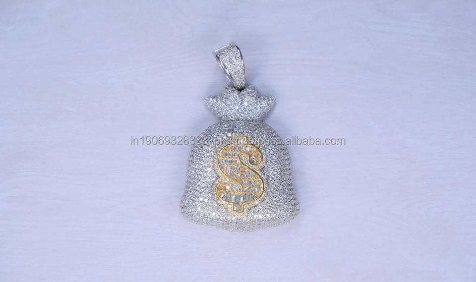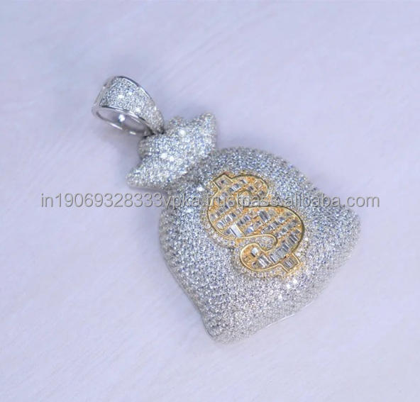 จี้เงินแท้ 925 ชุบโรเดียม รูปถุงเงินประดับเพชรโมอิสซาไนต์ สไตล์ฮิปฮอป สำหรับทุกเพศ เหมาะสำหรับเป็นของขวัญวันครบรอบ