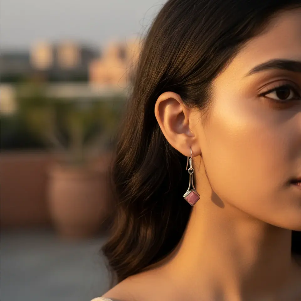 ต่างหูเงินแท้ 925 ประดับโรโดโครไซต์ ดีไซน์ทันสมัยสำหรับผู้หญิง