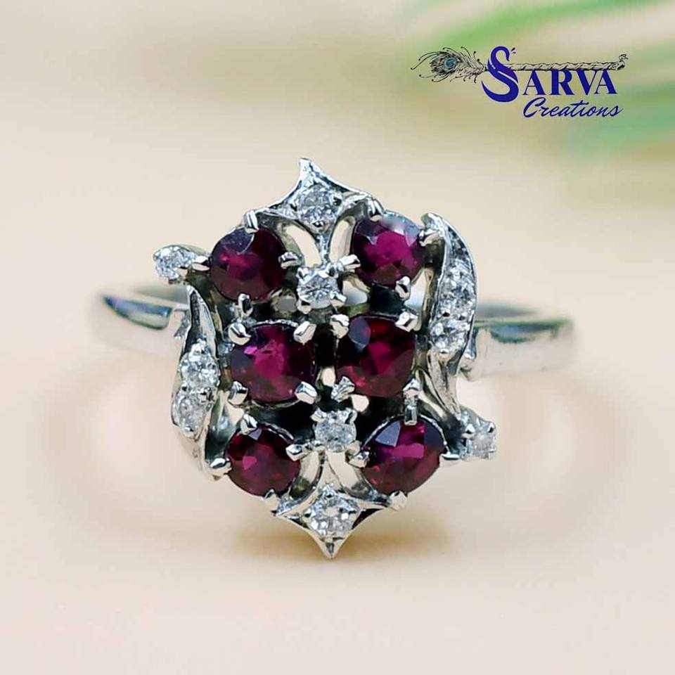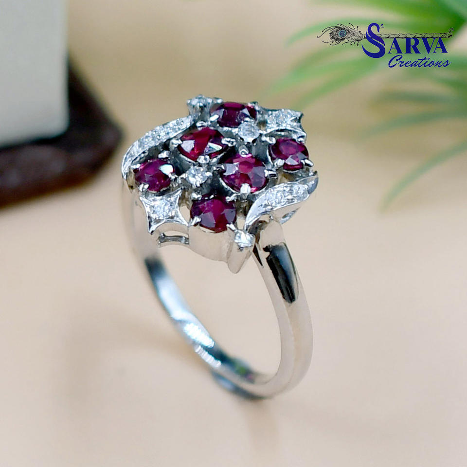 แหวนเงินแท้ 925 ประดับโรโดไลต์การ์เนตแบบกลุ่ม | พลอยสีแดงธรรมชาติประดับด้วยคิวบิกเซอร์โคเนีย | เครื่องประดับอัญมณีสำหรับผู้หญิง