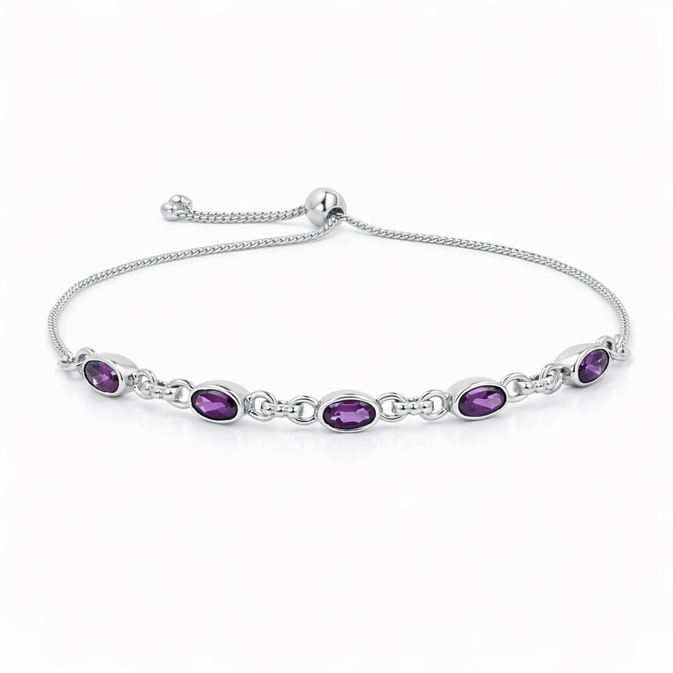 สร้อยข้อมือเงินแท้ 925 ประดับโรโดไลต์การ์เนตหินรูปไข่ห้าเม็ด พร้อมตัวล็อคแบบจุดสามจุด ชุบทองและโรเดียม