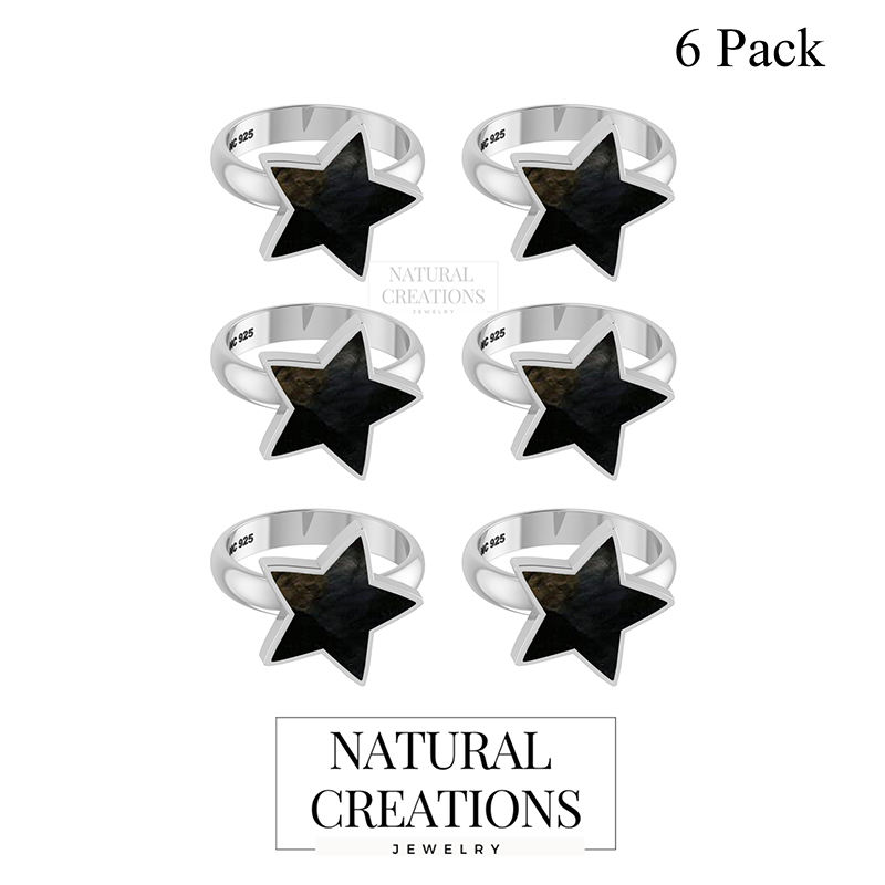 แหวนเงินสเตอริง925แหวนพลอยทัวร์มาลีนสีดำทรงดาวแผ่นธรรมชาติแฟนซีทันสมัยใช้ได้ทั้งชายและหญิง