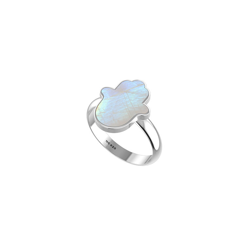 925 Sterling Silver Ring Bezel Setting Rainbow Moonstone Gemstone Ahimsa Shape Classic Wedding Party Trendy Fashionable Unisex