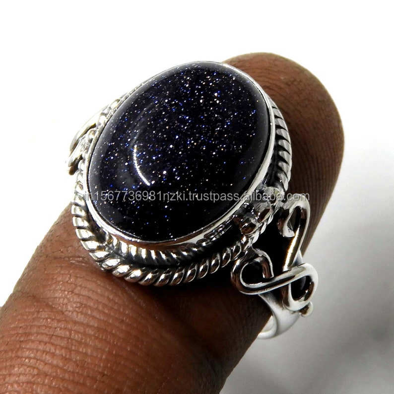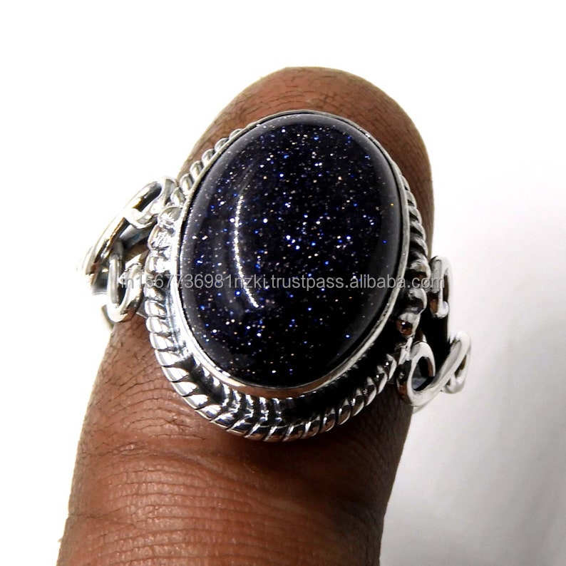 แหวนเงินสเตอร์ลิง925แหวนพลอยสีฟ้าแบบโบฮีเมียนของขวัญเครื่องประดับเงินทำด้วยมือสำหรับเธอ