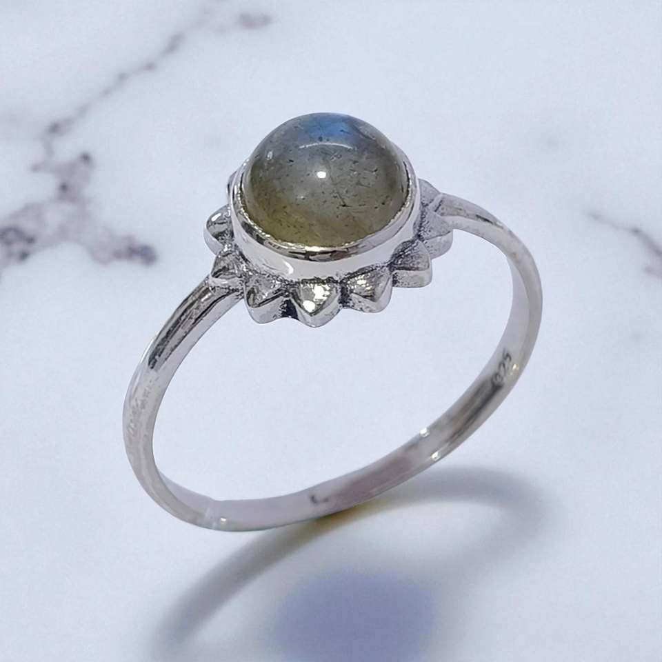 แหวนเงินแท้ 925 ประดับพลอยอเมทิสต์ทรงกลมธรรมชาติและลาบราโดไรต์ ดีไซน์โบโฮสำหรับงานปาร์ตี้ ทำด้วยมือ คุณภาพเยี่ยมสำหรับเธอ