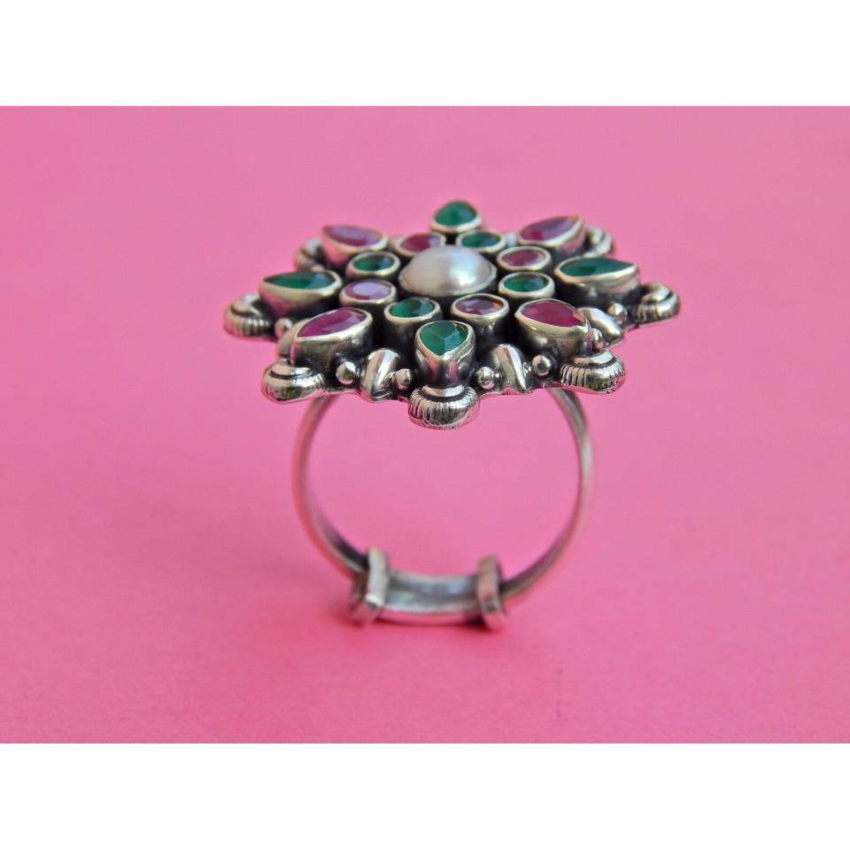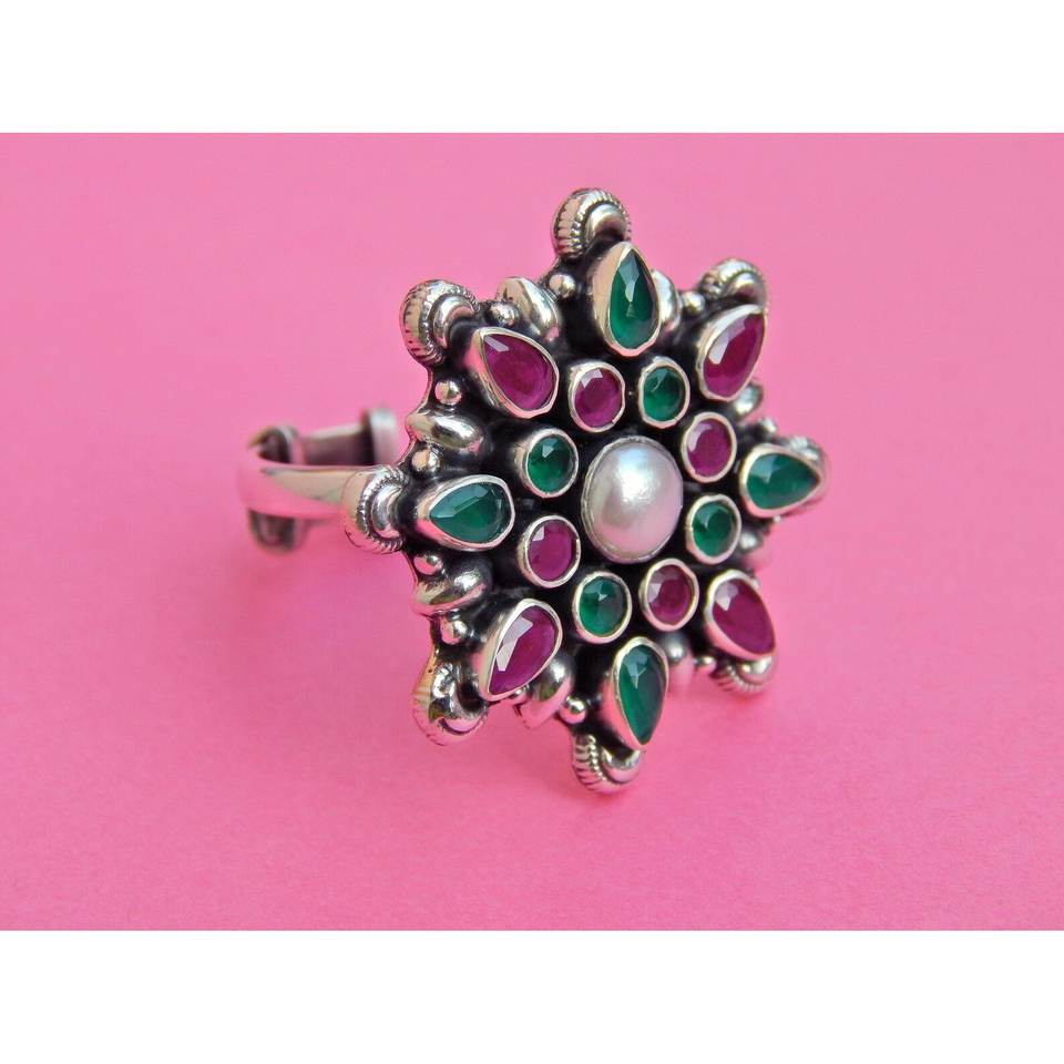 แหวนเงินสเตอร์ลิง925แหวนพลอยธรรมชาติทำด้วยมือไข่มุกน้ำจืดทับทิมมรกตธรรมชาติของขวัญที่สมบูรณ์แบบสำหรับ Her-R0258-GS