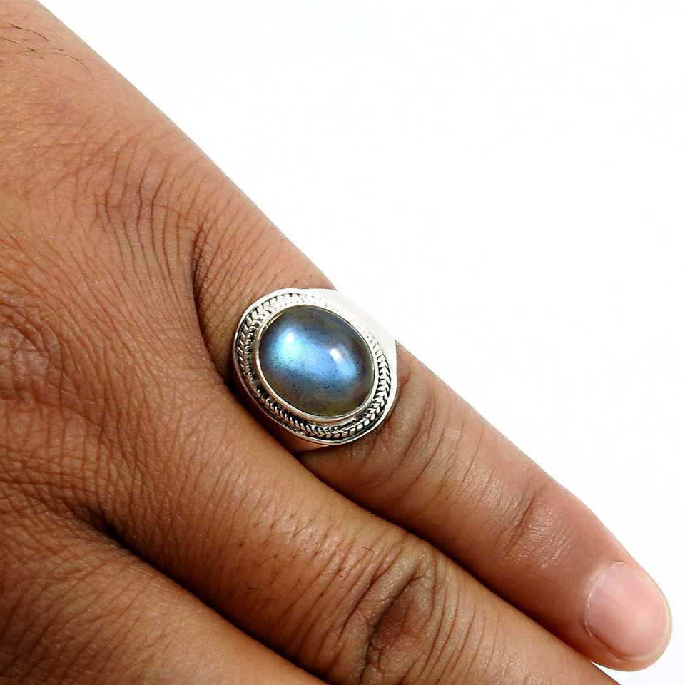 แหวนเงินแท้ 925 ชุบออกซิไดซ์ ประดับพลอยลาบราดอไรต์แท้ทรงรี สไตล์โบฮีเมียน ขายส่งเครื่องประดับ