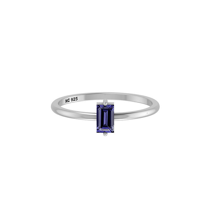 แหวนเงินสเตอริง925ตั้งวงแหวนอิโอไลท์พลอยรูปทรงบาแกตต์คลาสสิกงานแต่งงานปาร์ตี้อินเทรนด์แฟชั่นใช้ได้ทั้งชายและหญิง