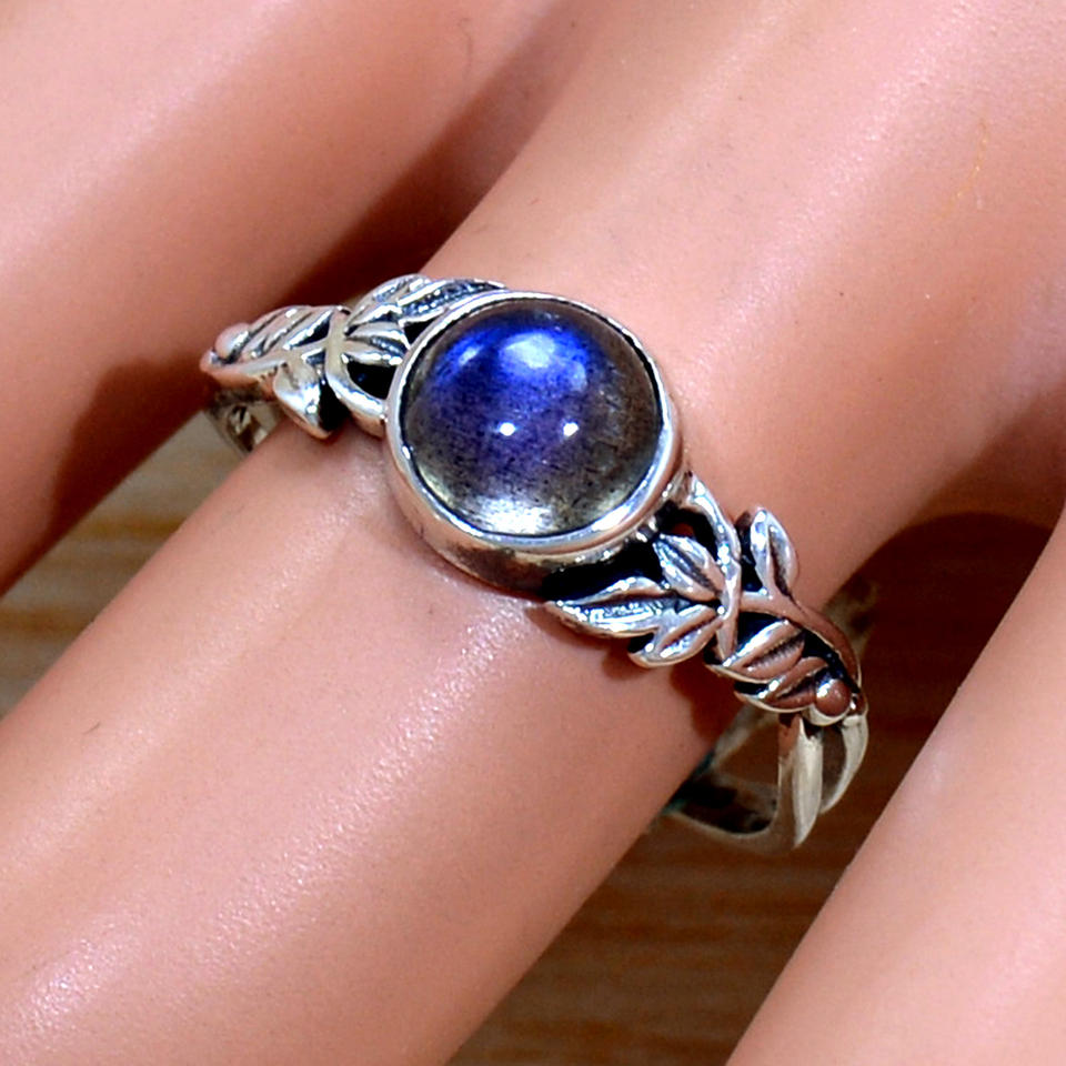 แหวนเงินสเตอร์ลิง925อัญมณีลาบราดอไรต์แฮนด์เมดเครื่องประดับชั้นดีดีไซน์ใหม่ล่าสุดออกแบบได้ตามต้องการเป็นของขวัญสำหรับผู้หญิง