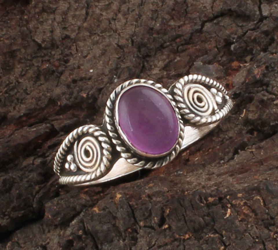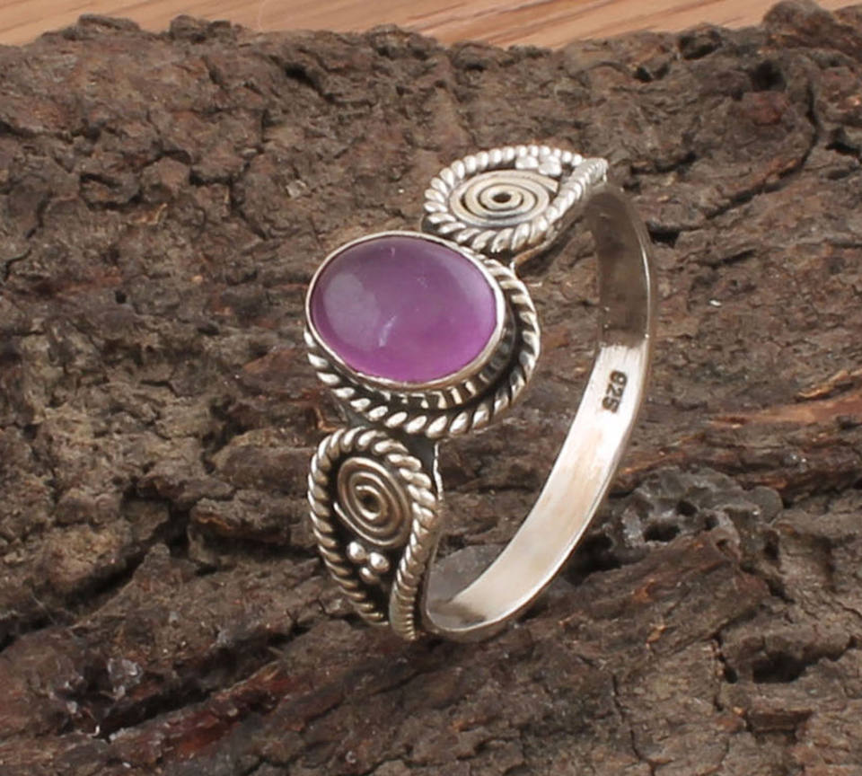 925 Sterling Silver Ring with Purple Jade Gemstone Ring Handmade Vintage Boho Jewelry for Women Gift Idea