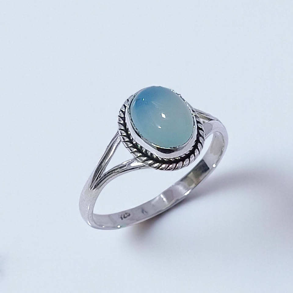 แหวนเงินแท้ 925 ประดับพลอยบลูแคลซิโดนี ดีไซน์วงแหวนแยกส่วน งานแฮนด์เมด เครื่องประดับคุณภาพสูง