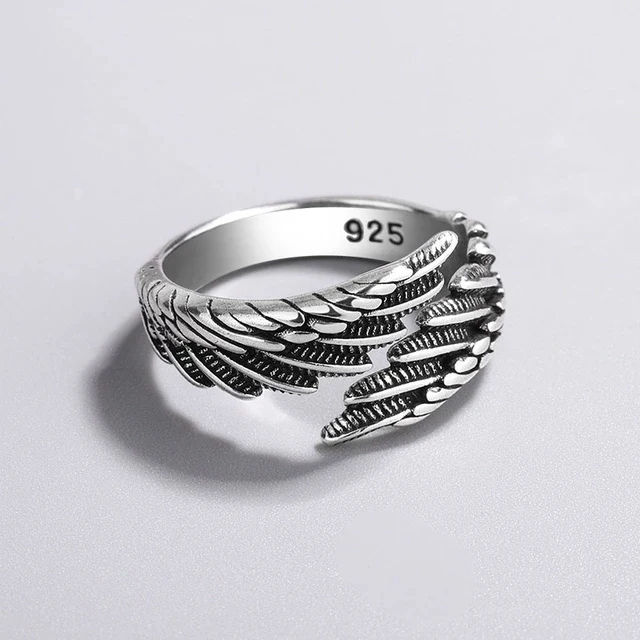 แหวนเงินแท้ 925 แฟชั่นฮิปฮอปวินเทจ ดีไซน์ปีกสุดสร้างสรรค์สำหรับคู่รัก เครื่องประดับเงินไทยสำหรับงานปาร์ตี้ ของขวัญวันเกิด