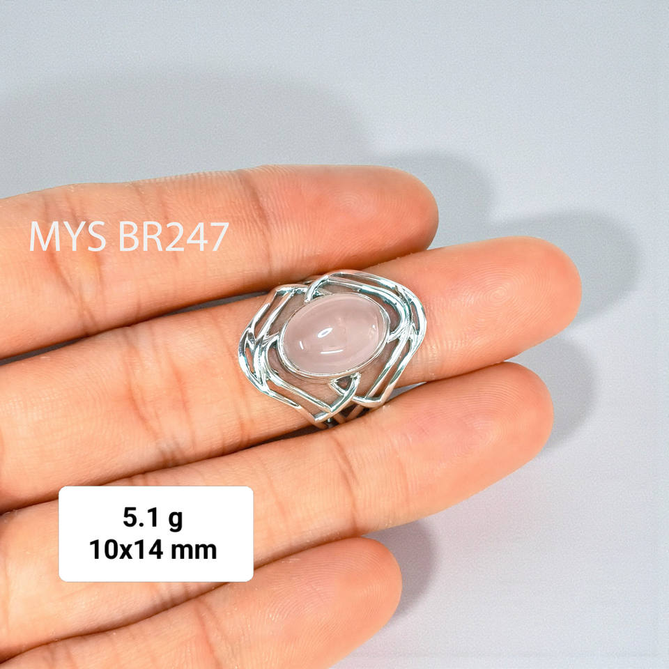แหวนเงินแท้ 925 ดีไซน์ทำมือประดับโรสควอตซ์ แหวนเงินขายส่งราคาถูก