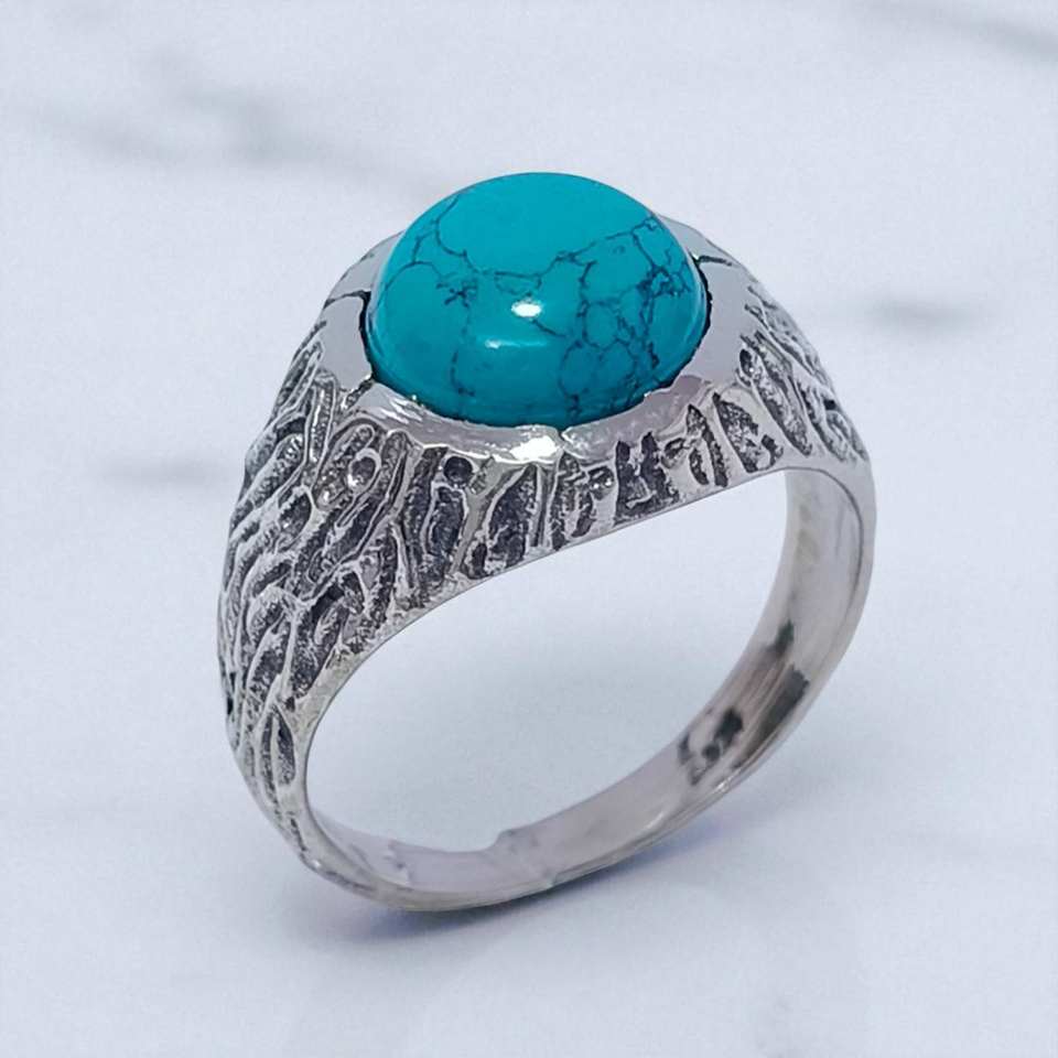 แหวนเงินแท้ 925 ประดับด้วยเทอร์ควอยซ์สีน้ำเงินธรรมชาติ สไตล์โบฮีเมียนคลาสสิก ราคาขายส่ง เครื่องประดับเงิน