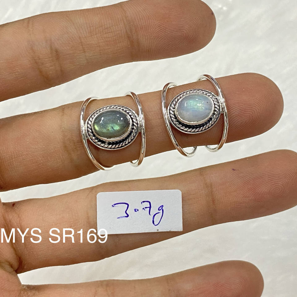 แหวนเงินแท้ 925 ประดับด้วยพลอยมูนสโตนธรรมชาติ ราคาขายส่ง เครื่องประดับเงิน