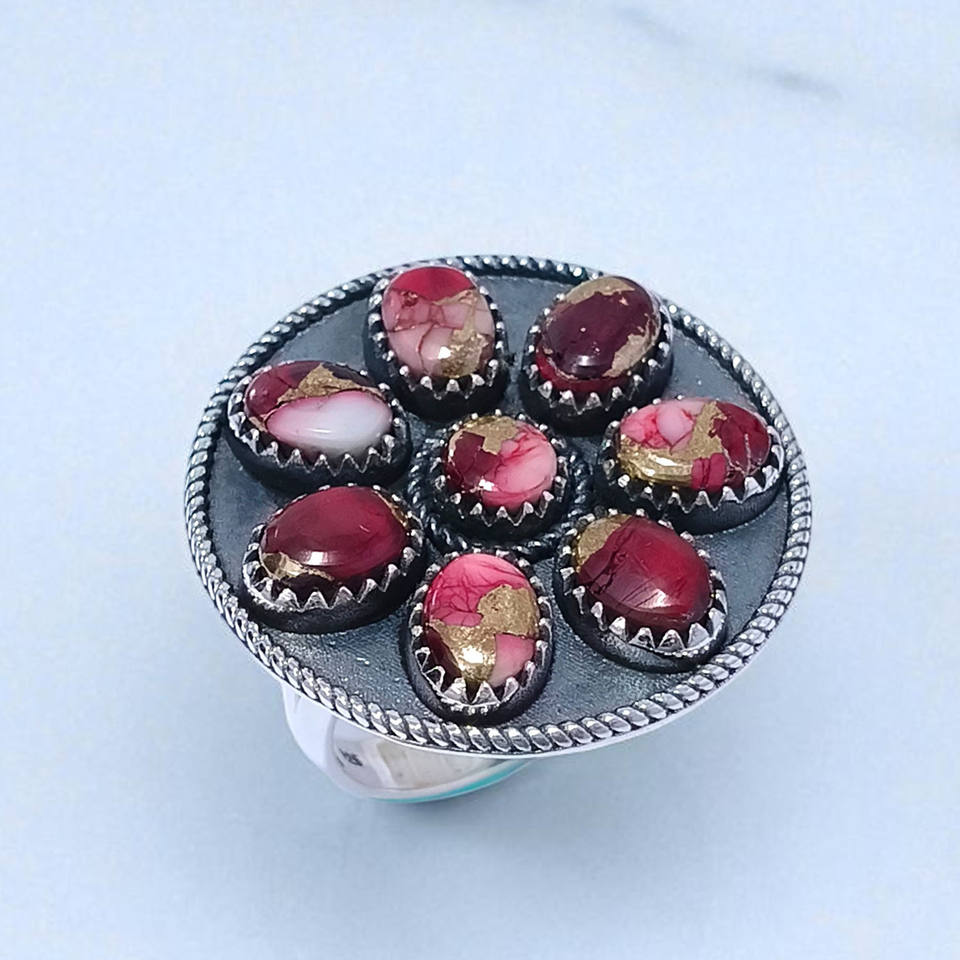 แหวนเงินแท้ 925 ประดับพลอยรูปไข่และทรงกลม โรส ดาเลีย เทอร์ควอยซ์ เครื่องประดับเงินแท้ขายส่ง