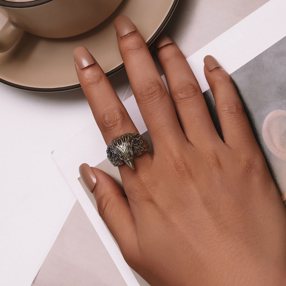 แหวนเงินแท้ 925 ลายหัวกะโหลก นกอินทรี ประดับเพชรคิวบิกเซอร์โคเนีย