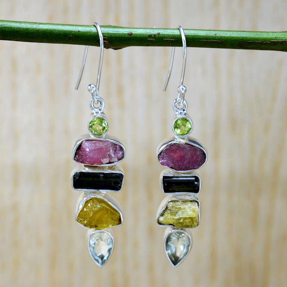 แหวนเงินแท้ 925 ประดับทัวร์มาลีน และต่างหูพลอยดิบหลากชนิด ราคาขายส่ง เครื่องประดับ
