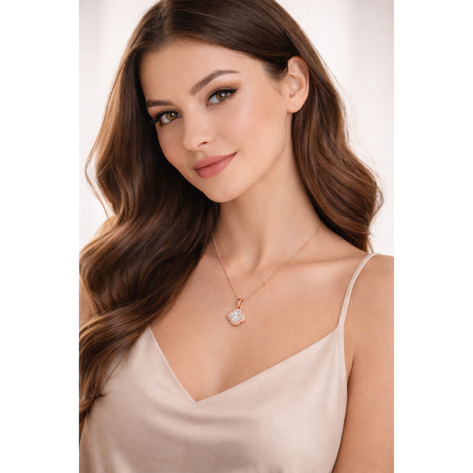 สร้อยคอจี้รูปดาวประดับเพชรทรงกลมสีโรสโกลด์