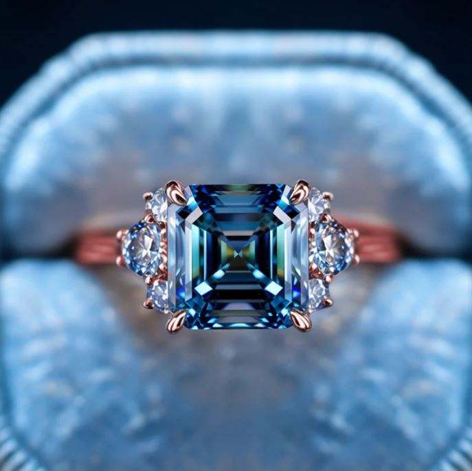 แหวนเงินแท้ 925 ชุบทองคำสีกุหลาบ ประดับพลอยมอสซาไนต์ทรง Asscher สีน้ำเงิน สำหรับงานแต่งงาน งานหมั้น งานเลี้ยง หรูหรา