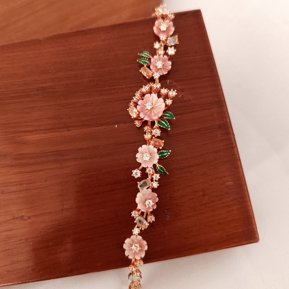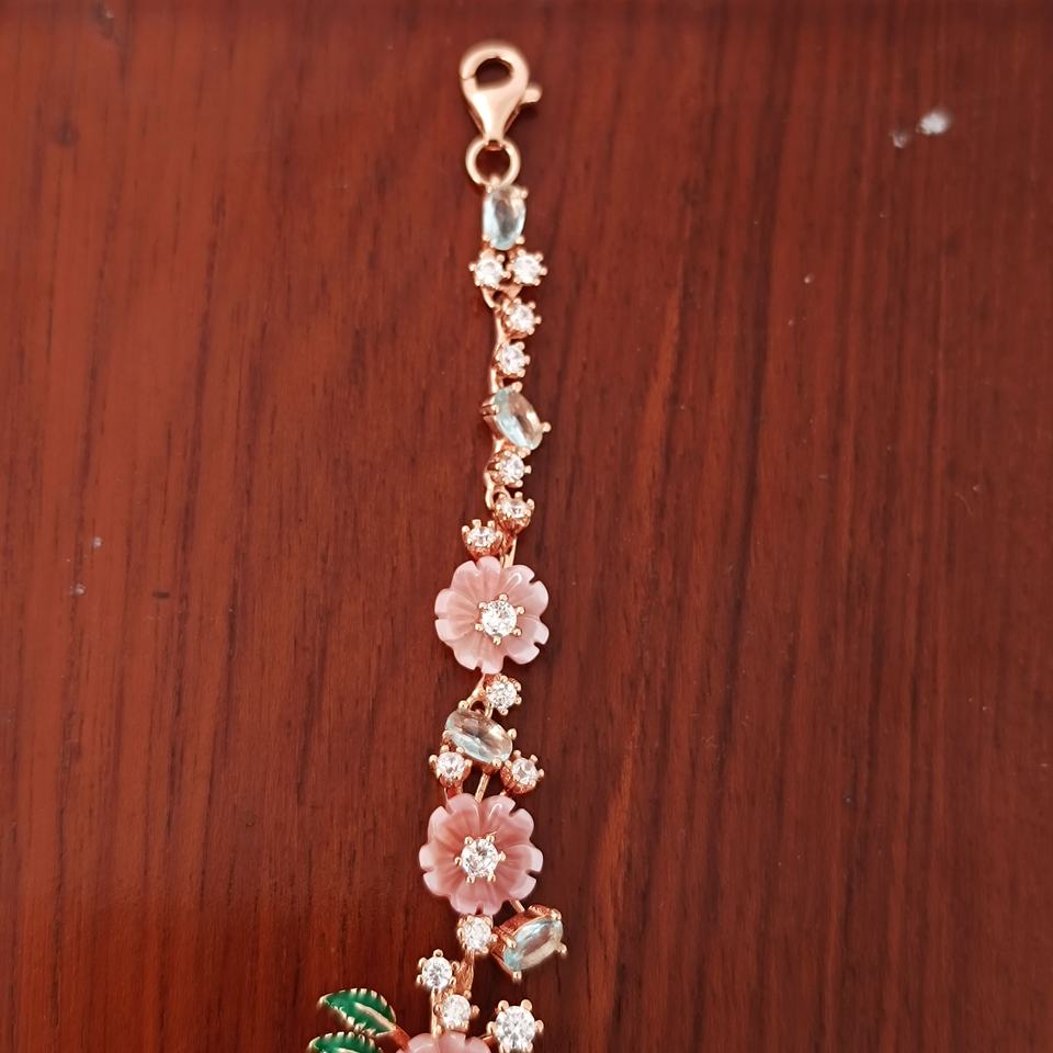 สร้อยข้อมือดีไซน์ดอกไม้เคลือบทองชมพูประดับเพชรและเคลือบสีชมพู สำหรับผู้หญิง เหมาะเป็นของขวัญสำหรับงานปาร์ตี้