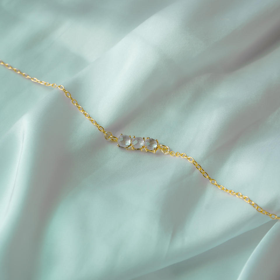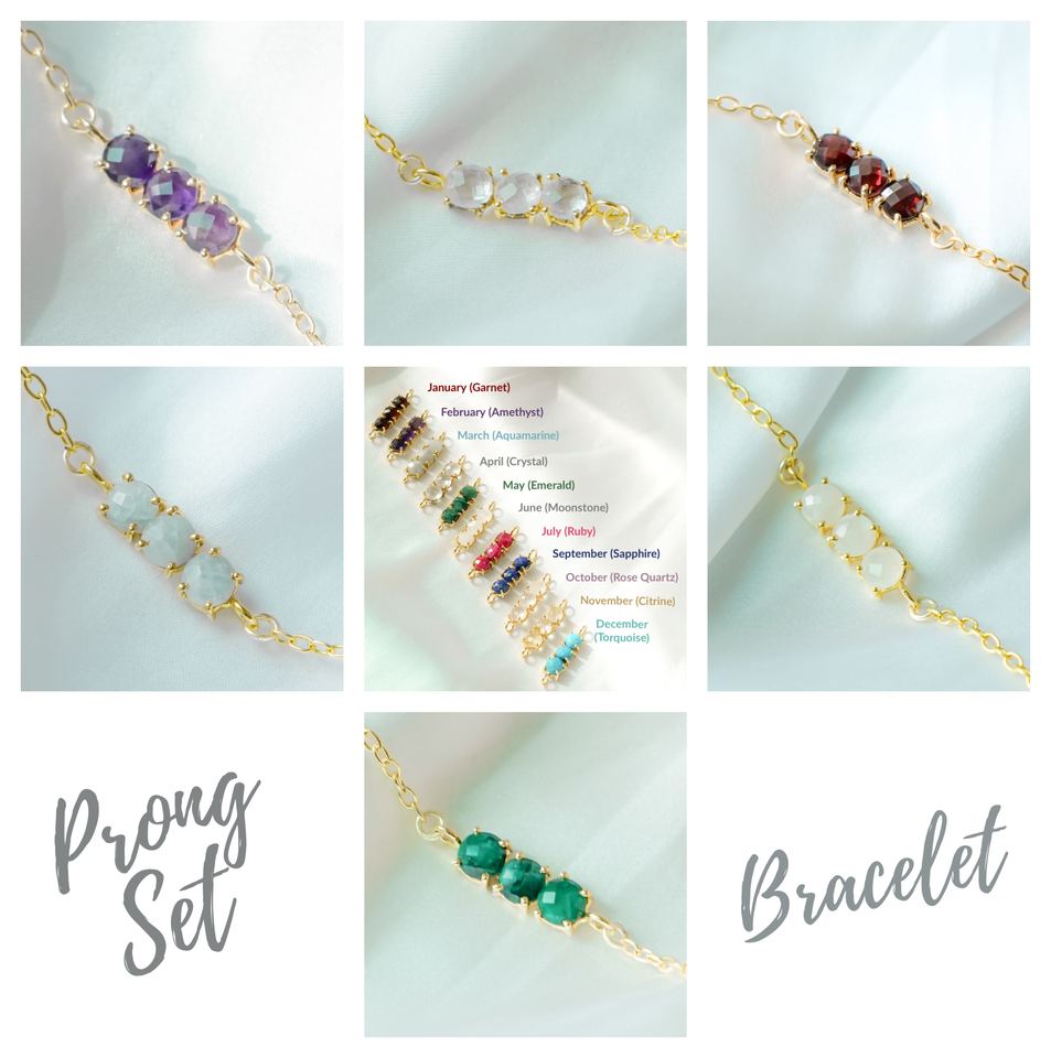 สร้อยข้อมือเงินแท้ 925 ประดับโรสควอตซ์ หินประจำเดือนเกิด | สร้อยข้อมือแบบมีจี้ประดับเพชรสามเม็ดแบบสั่งทำพิเศษ
