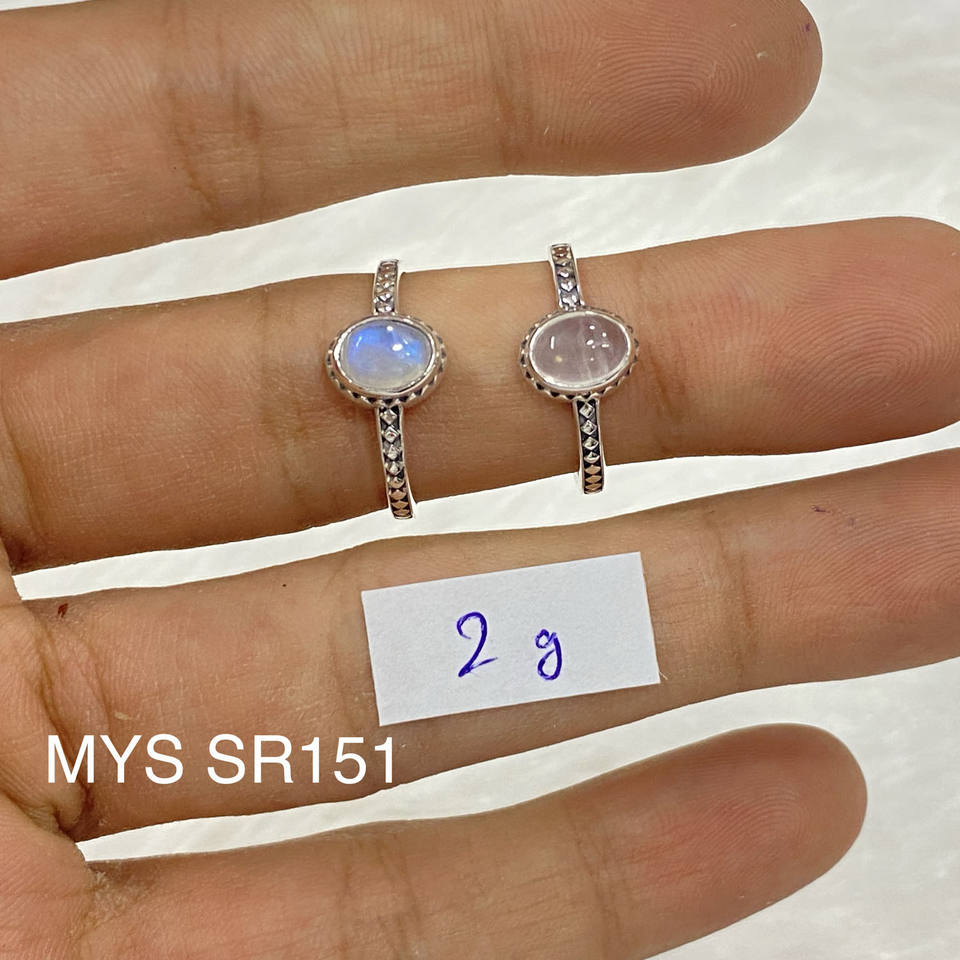 แหวนเงินแท้ 925 ประดับโรสควอตซ์และมูนสโตนสีรุ้ง ทำด้วยมือ ราคาขายส่ง เครื่องประดับเงิน