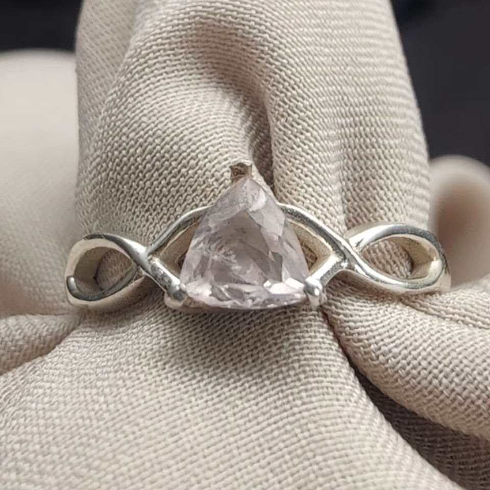 แหวนเงินแท้ 925 ประดับโรสควอตซ์ทรงทริลเลียน พร้อมตัวเลือกชุบทอง เครื่องประดับพลอยทำมือ ขายส่ง