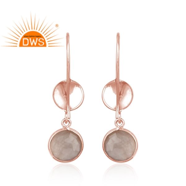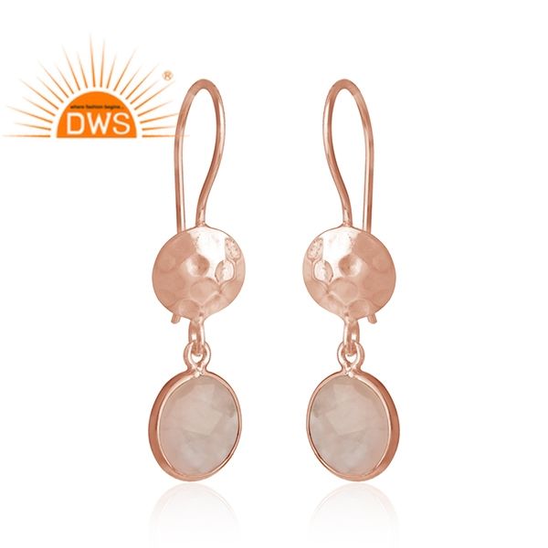 925เงินสเตอร์ลิงกุหลาบชุบทองธรรมชาติโรสควอตซ์พลอยห้อยต่างหูสำหรับผู้หญิงผู้ผลิตเครื่องประดับ