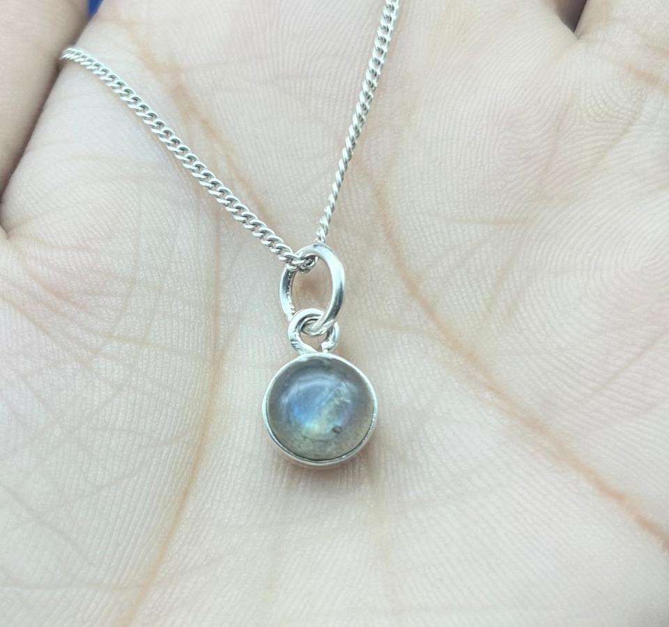 สร้อยคอจี้เงินลาบราดอไรต์กลมสีเงิน925จี้อัญมณีสีฟ้าสำหรับผู้หญิงเหมาะเป็นของขวัญ