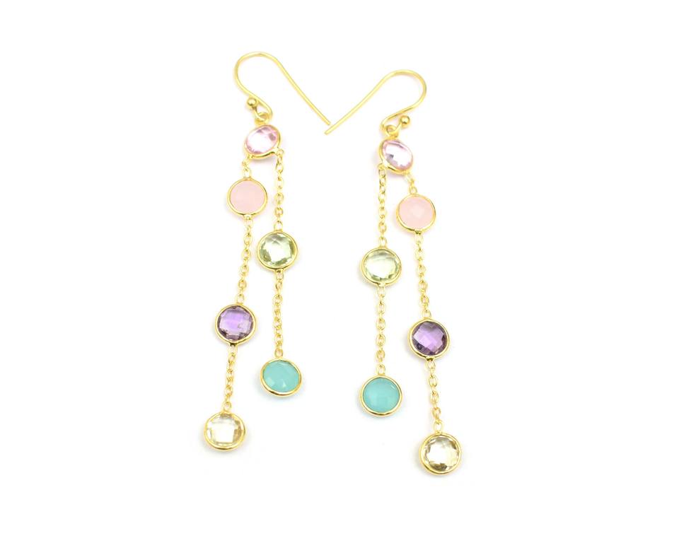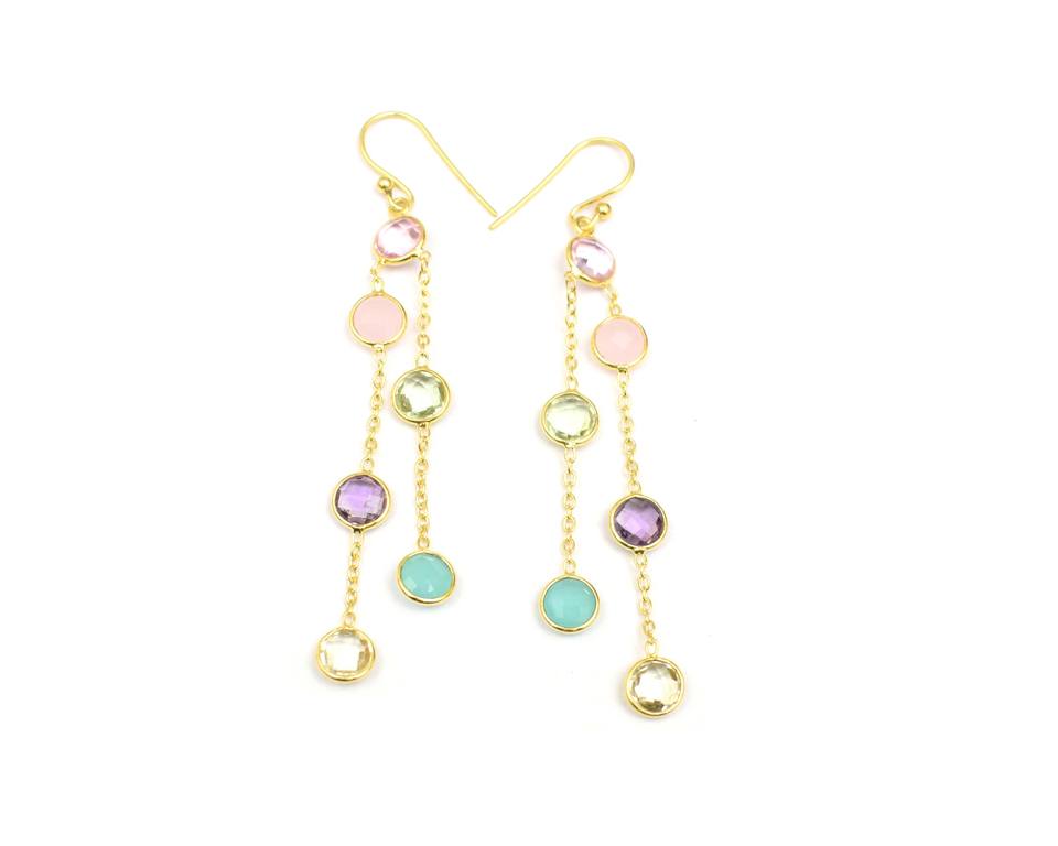 925เงินสเตอร์ลิงทรงกลมอัญมณีหลายเหลี่ยมเพชรพลอยทองชุบทองทำด้วยมือของขวัญแฟชั่นสำหรับต่างหูตุ้งติ้งของเธอ